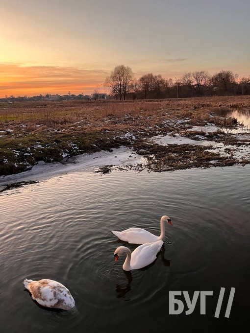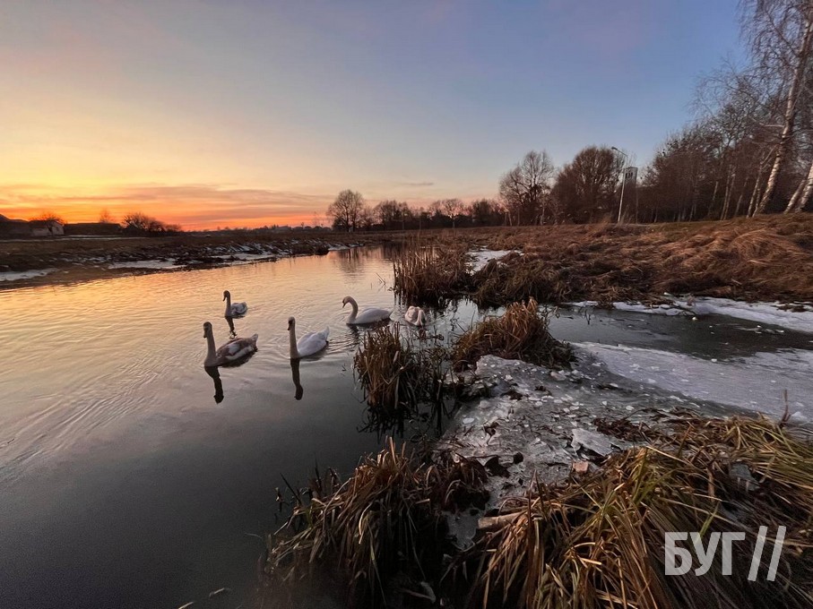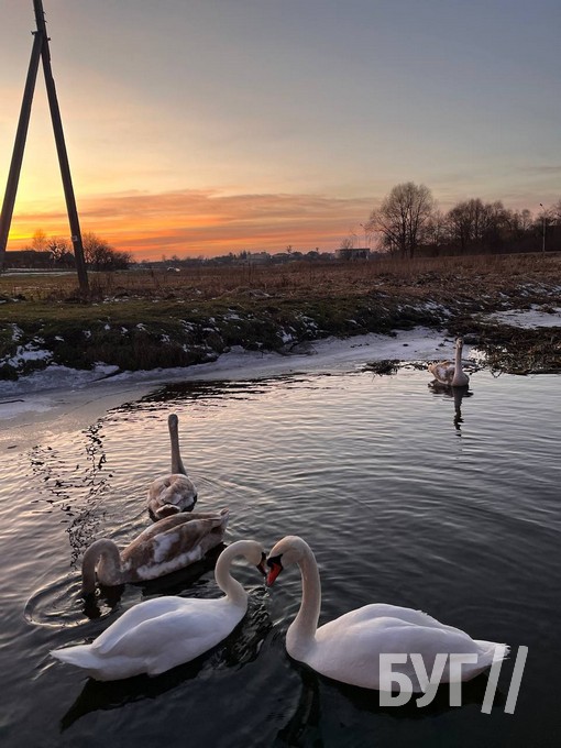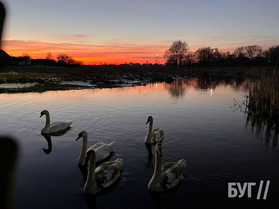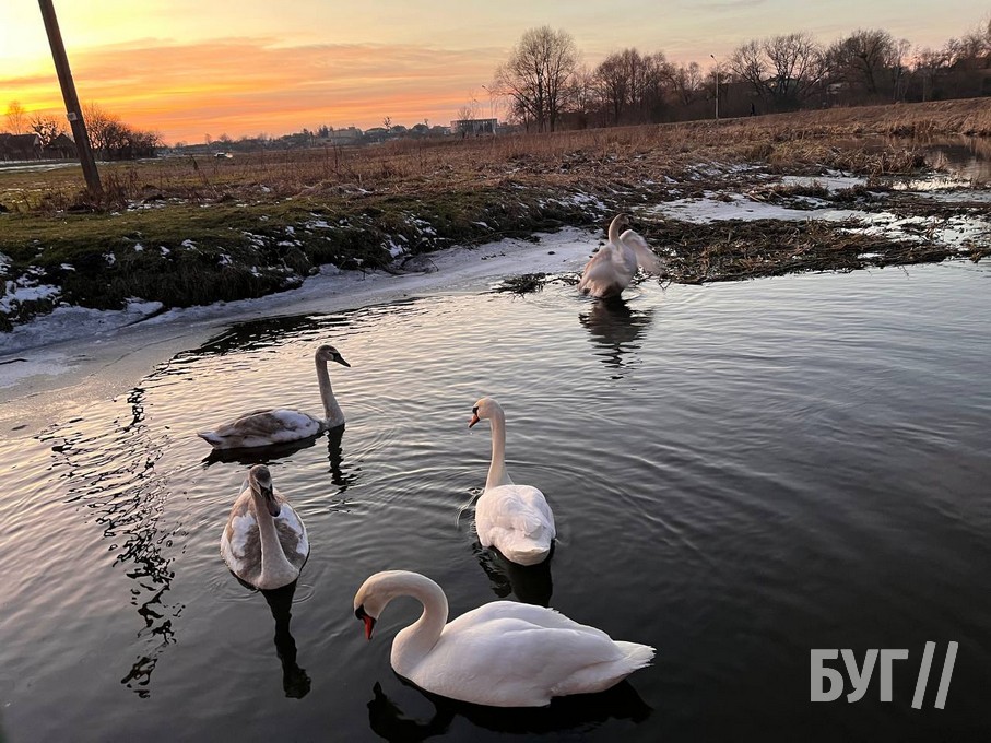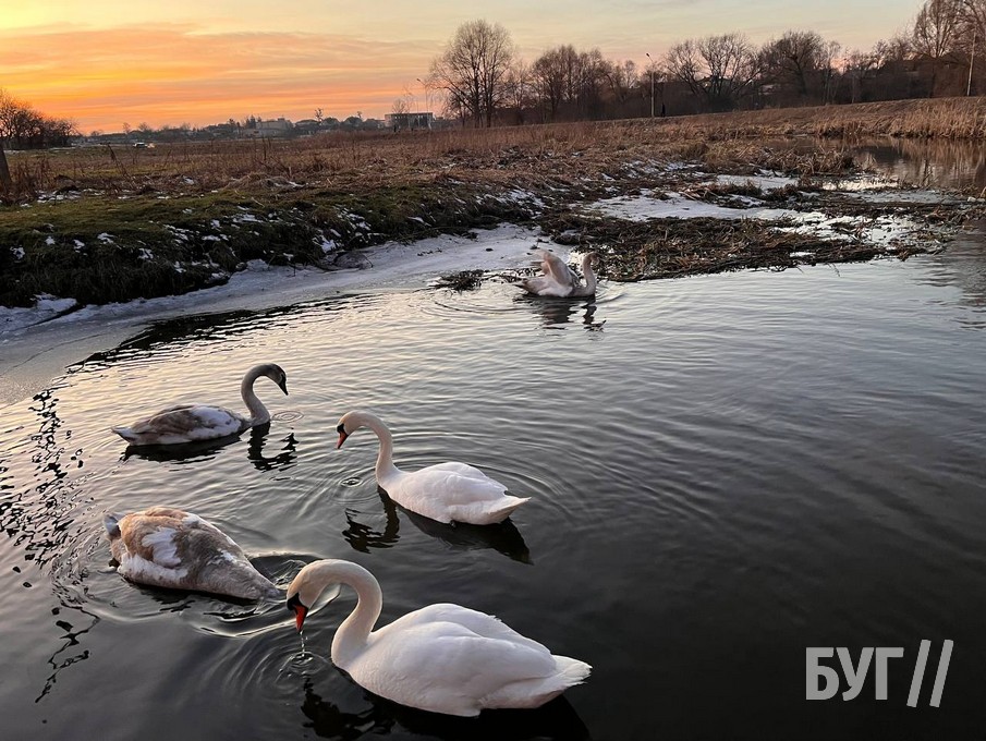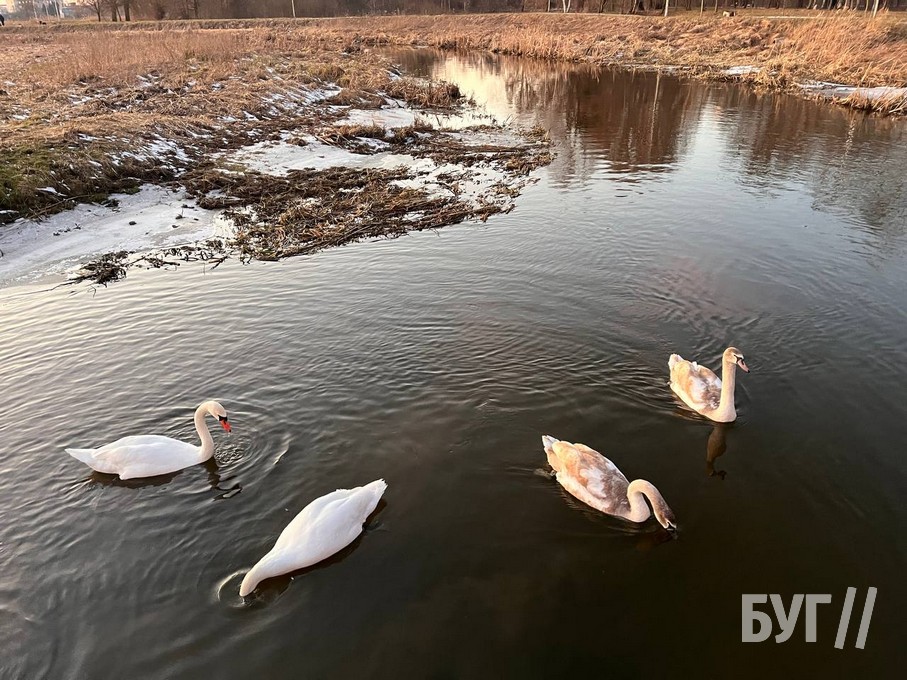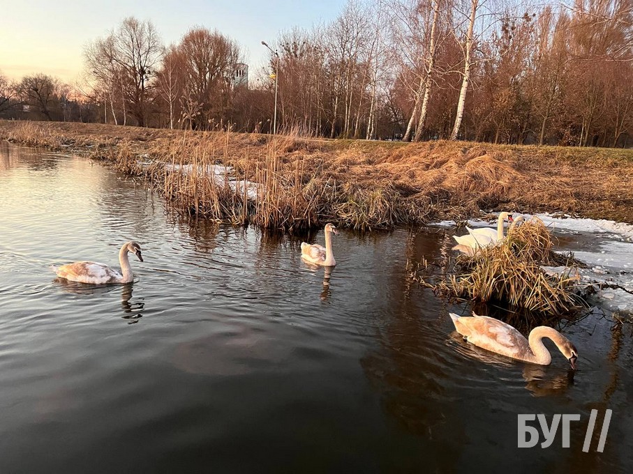 12 січня на узбережжі річки Луги у Слов’янському парку Володимира помітили п’ятеро лебедів.