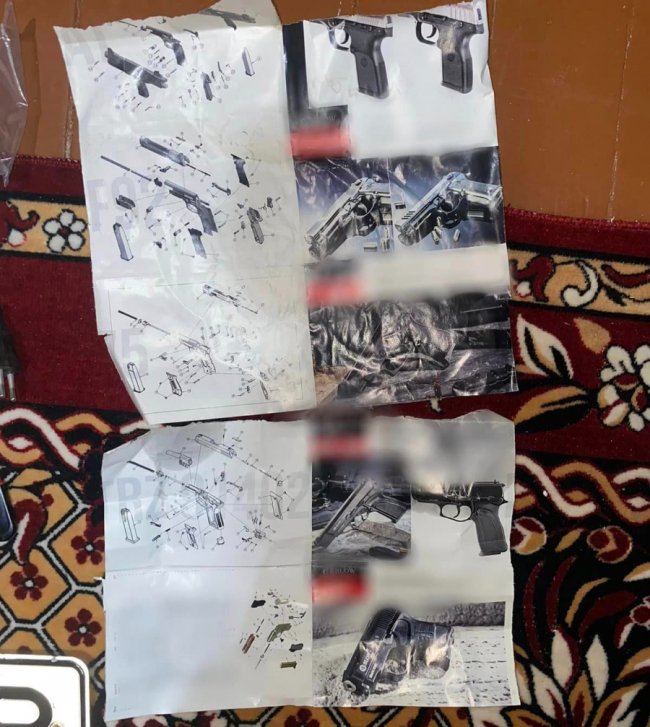 Вилучили десятки набоїв калібру 9 мм виготовлені кустарним способом, магазини до зброї, пістолети з візуальними ознаками внесених конструктивних змін, інструкції до пістолетів, металеві тиски для внесення конструктивних змін, а також мобільні телефони, банківські картки та інші речові докази, що свідчать про його причетність до злочинної діяльності.