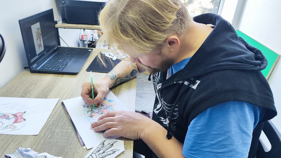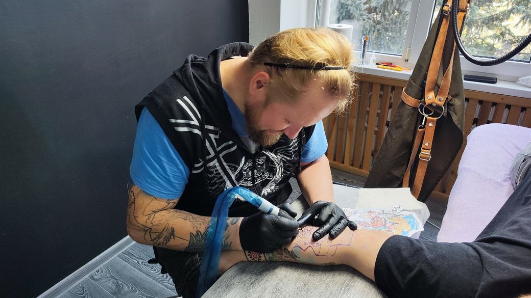 На Волині родина почала життя з початку. Чоловік розповів, що професійно почав робити татуювання 20 років тому. Каже, що малював все свідоме життя.