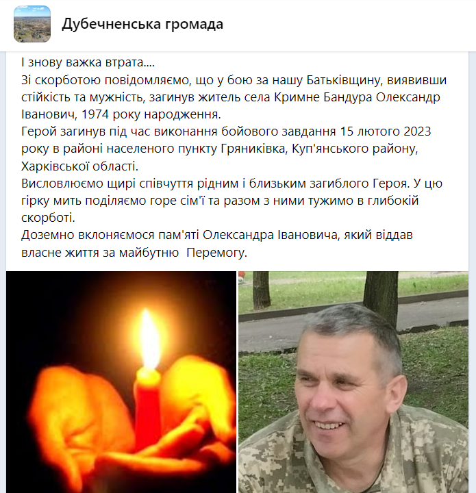 На Харківщині загинув 49-річний Герой з села Кримне, що на Волині, Олександр Бандура.