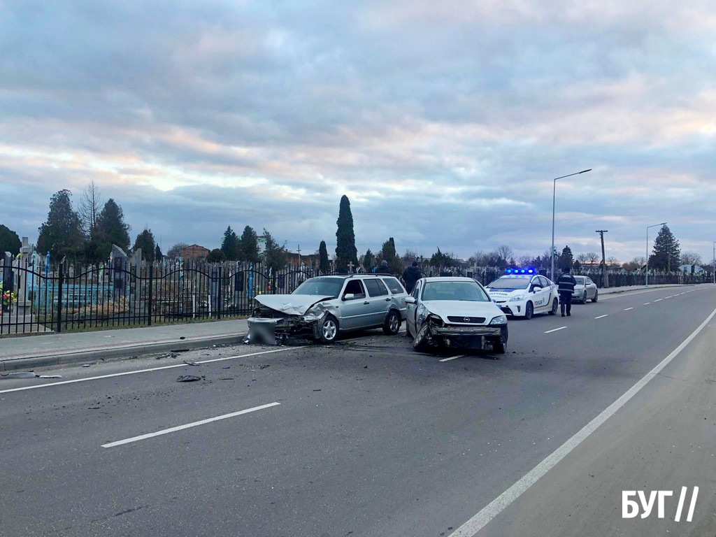 Аварія трапилась біля старого кладовища. Не розминулися легкові автомобілі Opel та Volkswagen. Opel в’їхав на бардюр, від чого автівку розвернуло, й у неї врізався Volkswagen, який рухався по зустрічній смузі. Транспортні засоби зазнали значних пошкоджень. Уламки розкидані по дорозі.