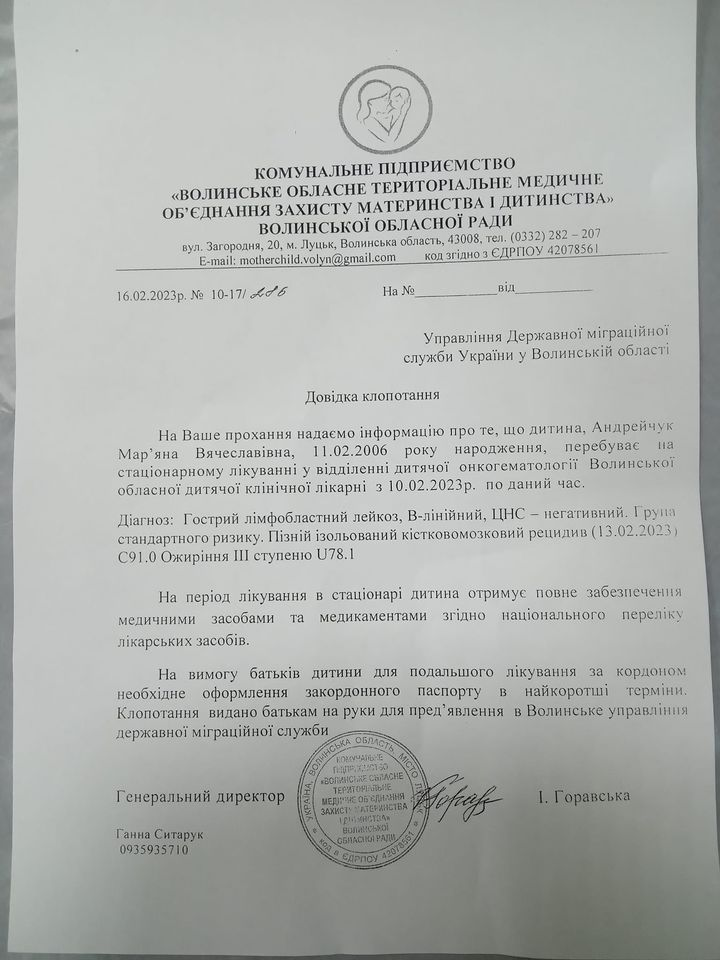 Зараз дівчина знаходиться на лікуванні у відділенні онкогематології Волинської обласної клінічної лікарні.