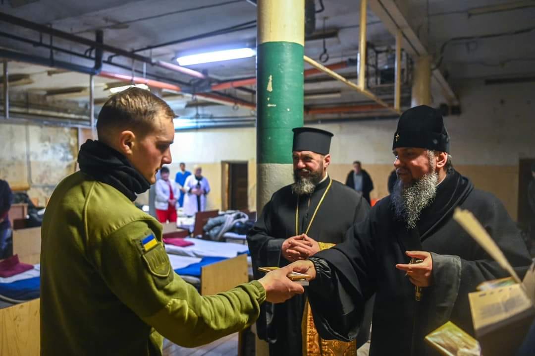 Поза протоколом було відвідання укриття - пролунав сигнал повітряної тривоги і Блаженнійший Владика спустився до бомбосховища, де огорнув своєю увагою всіх поранених пацієнтів, які перебували тут під час повітряної небезпеки.