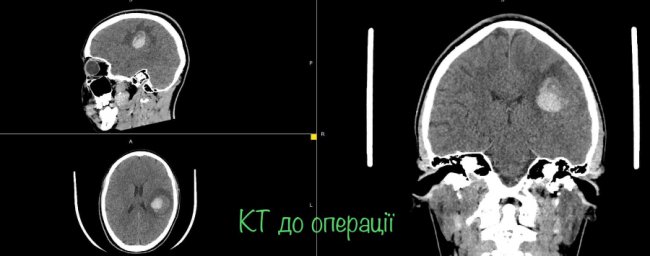 На МРТ виявили пухлину головного мозку з крововиливом в лівій домінуючій (важливішій) півкулі, в якій, власне, окрім центрів, які рухають кінцівками однієї половини тіла, розташований дуже важливий центр мови.