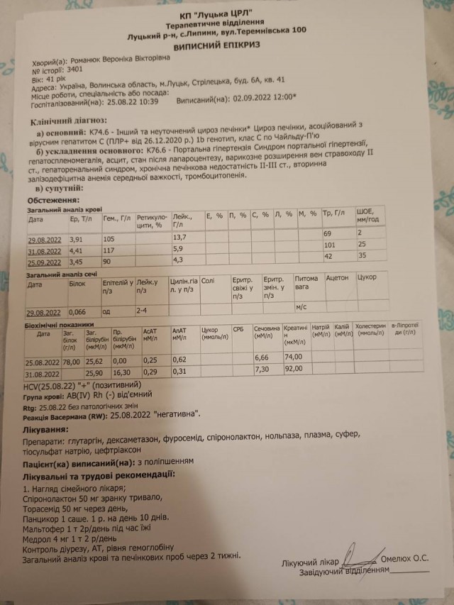 У 42-річної лучанки Вероніки Романюк діагностували цироз печінки, асоційований із вірусним гепатитом С. Єдиний варіант лікування – трансплантація печінки.