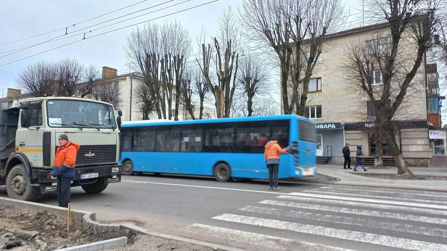 Зранку у понеділок, 27 лютого дорожники продовжили роботи на відрізку поруч із Сіті Парком та станцією переливання крові.