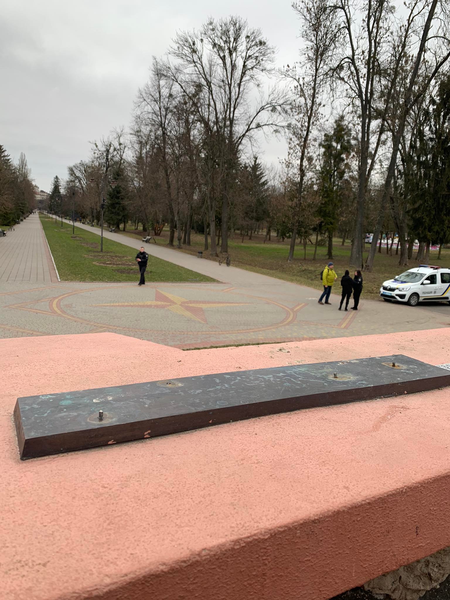 26 лютого вандали зруйнували скульптури кликунів-бігунів у Центральному парку культури і відпочинку імені Лесі Українки.