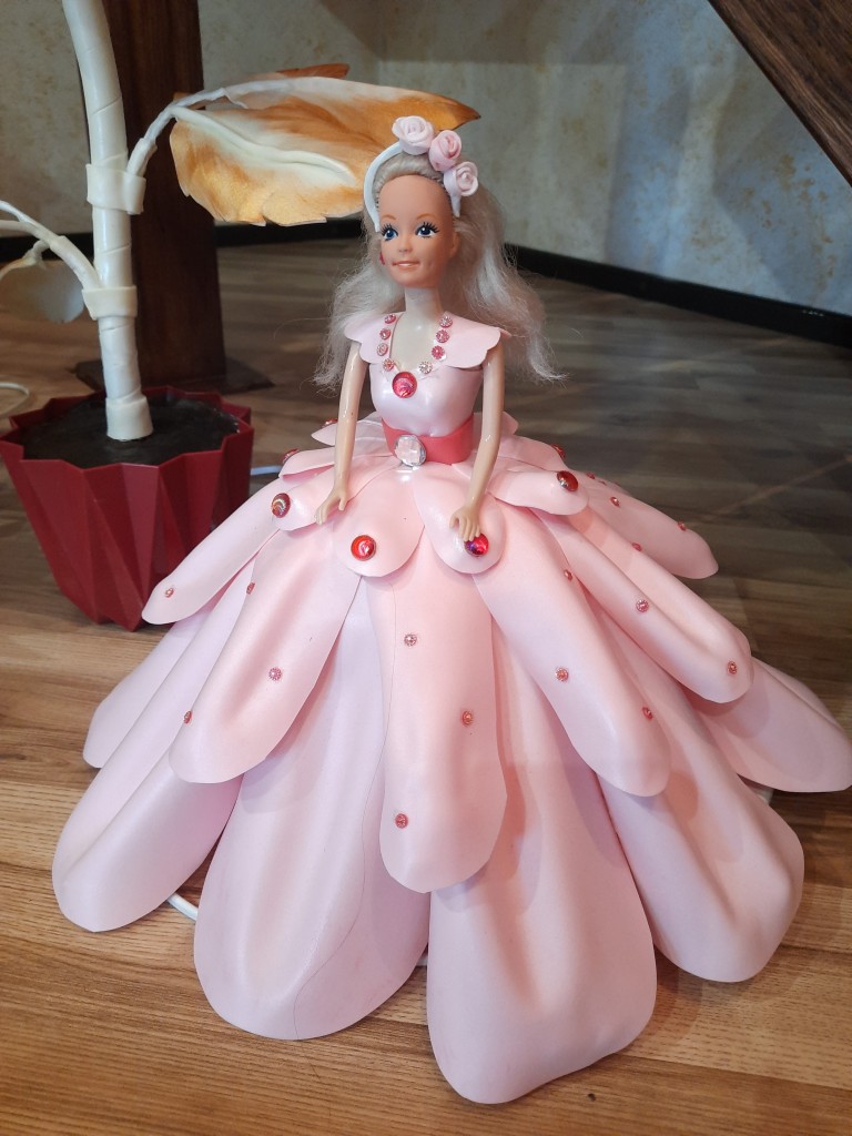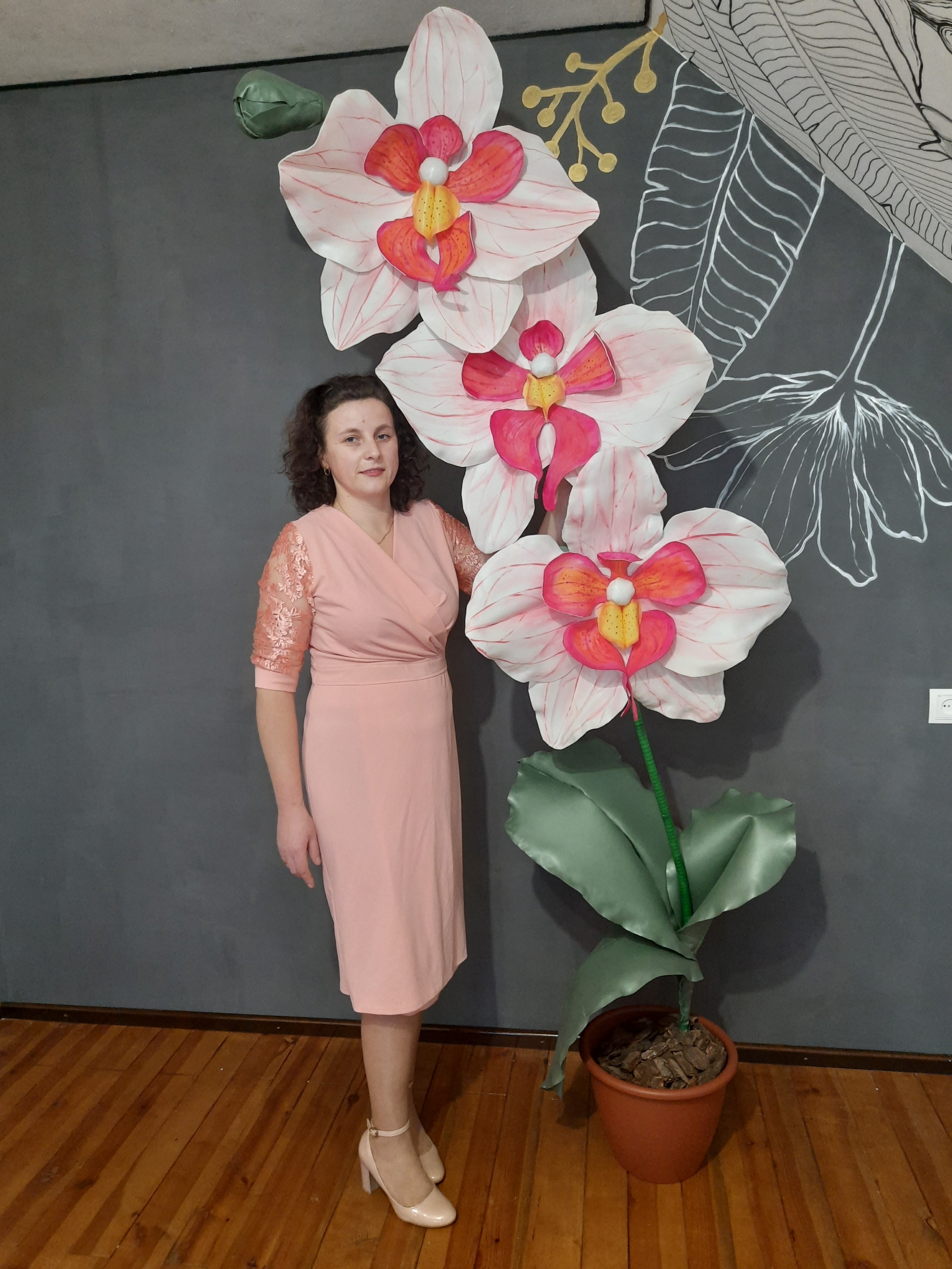 – двометрова орхідея. Пізніше були лілія, хризантема, півонія, магнолія, тюльпани, гортензії і навіть лялька. Такі квіткові композиції приносять естетичне задоволення, а у вечірній час деякі з них освітлюють кімнату. У цьому, розповідає жінка, їй допомагає син, який опановує професію електрика.