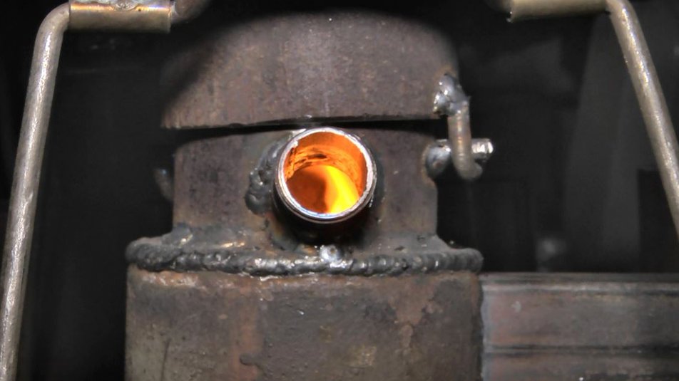 "Сюди заливається масло відпрацьоване, тут знаходиться вентилятор, якій працює від павербанка, для того, щоб запустити, потрібної його розпалити. І вичікуємо поки воно там розгориться", – каже волонтер.
