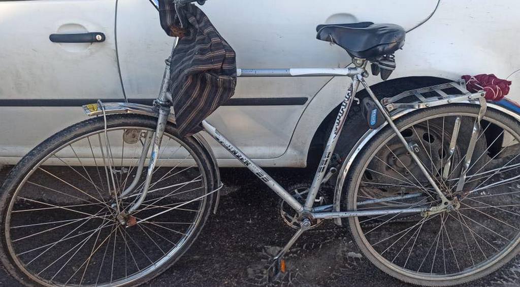 Мав велосипед сірого кольору, наручний жіночий годинник. Велосипед на фото належить чоловіку.