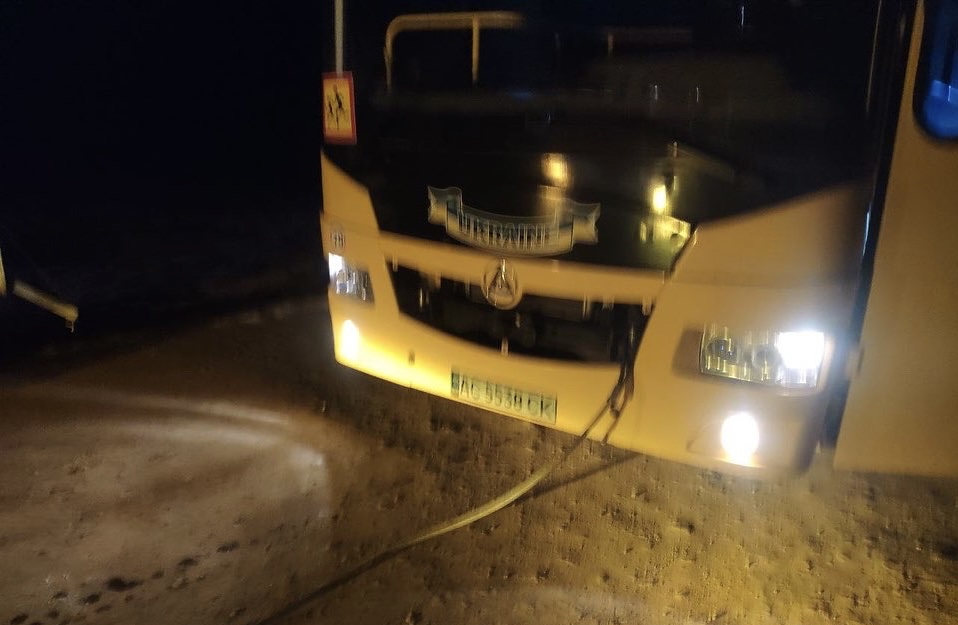 Рятувальники повідомили, що під час руху потяга, сталося зіткнення з автобусом марки «Еталон». Водій проігнорував червоний сигнал. На щастя ніхто не постраждав. В автобусі перебував водій та вчитель.