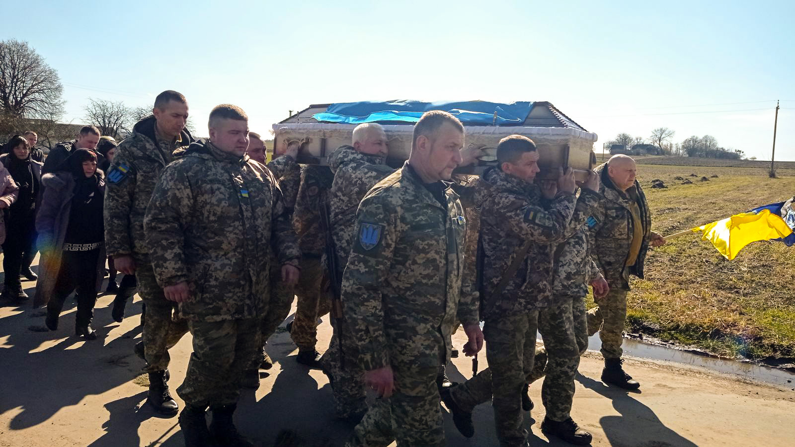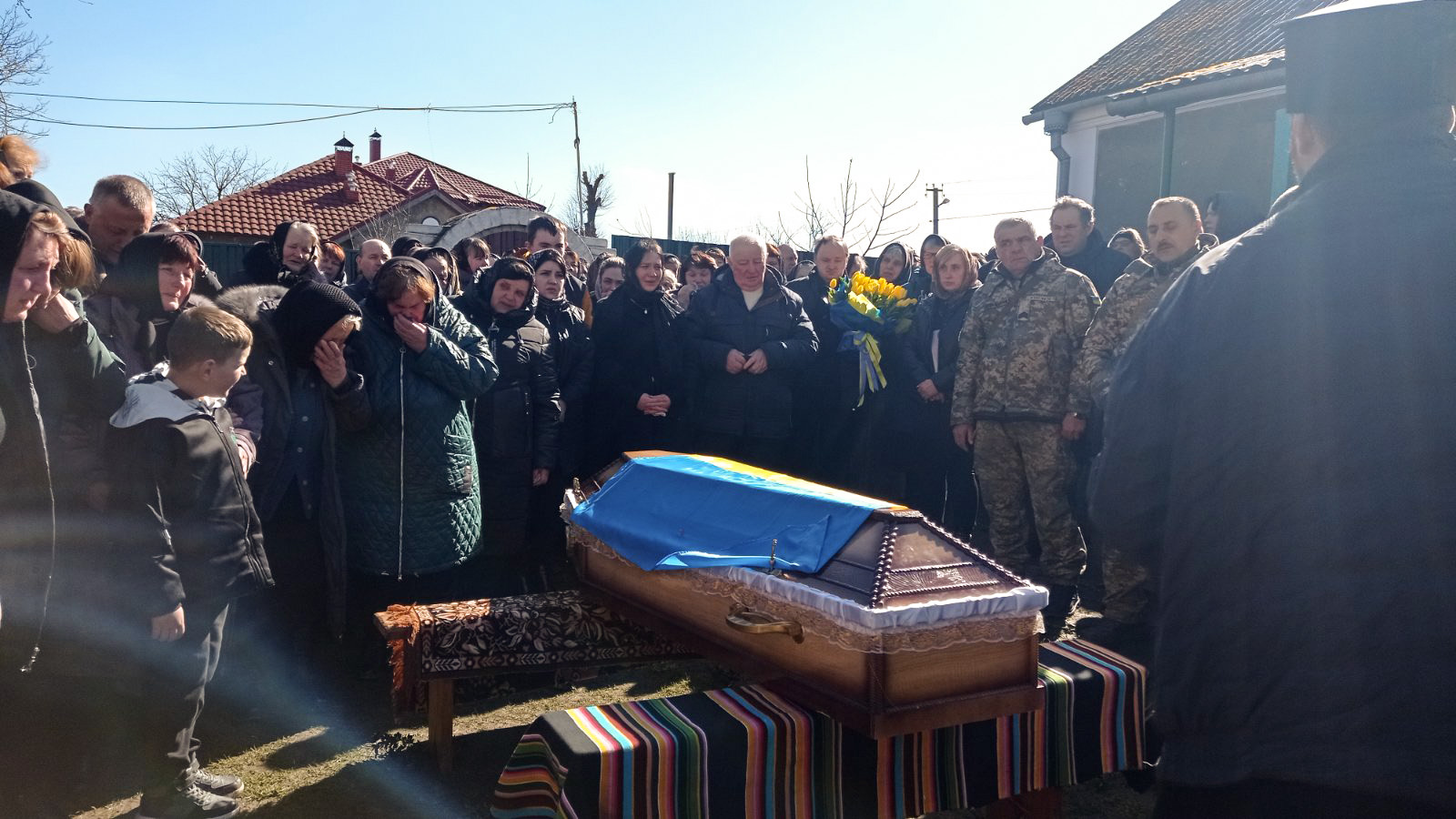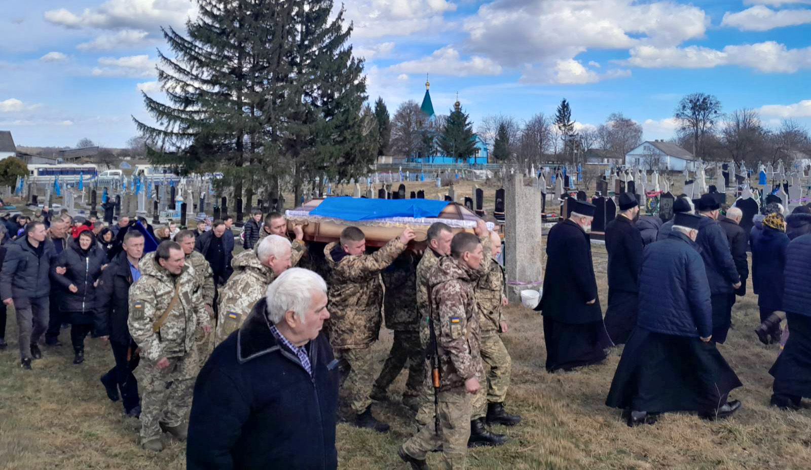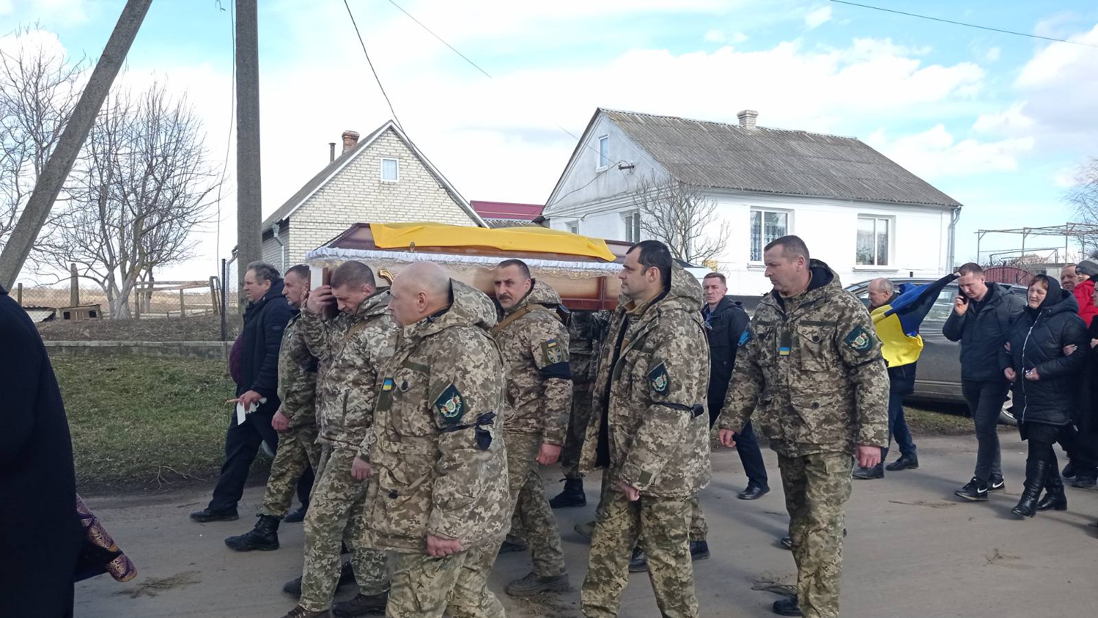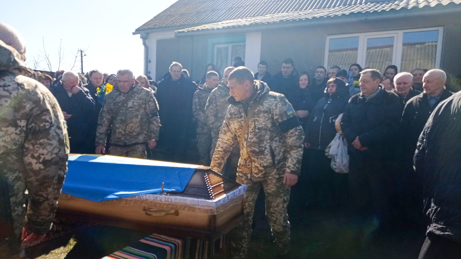 Попрощатися із полеглим захисником прийшли мама, дружина, діти, родичі, друзі, однокласники, односельчани, бойові побратими.