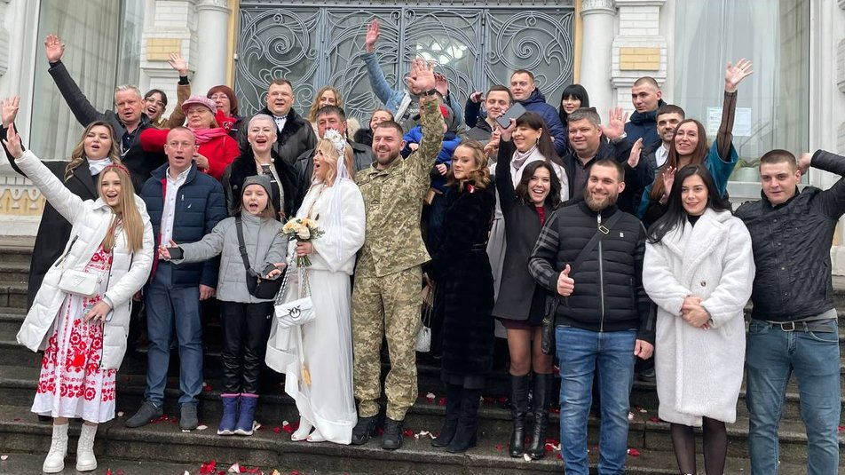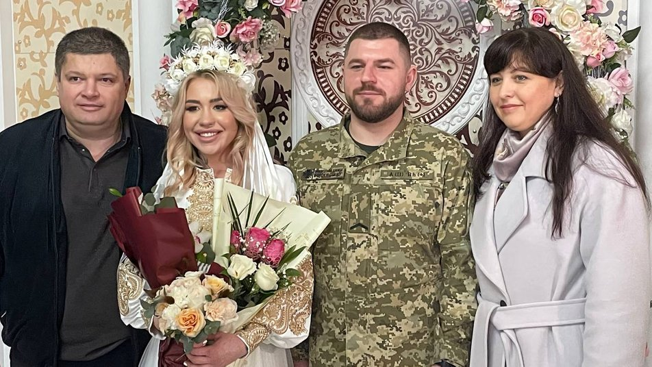 "А я не хвилююся: напередодні свята пережив емоції погостріші. Приїхав із Бахмута. Не був упевнений, що вийде приїхати, бо там дуже складна ситуація. Була проблема виїхати тому, що там залишилася одна дорога. Через дощі інші розмокли – багнюка. Машиною не проїдеш. Товариш хотів вивезти мене на легковому автомобілі — ми застрягли. І так вийшло, що друзі мої з 93-ї бригади вивезли мене танком через поле. Потім підібрали інші військові друзі. Їхав майже два дні. Там усі переправи розбиті. Дороги теж. Зараз почуваюся щасливим", – поділився наречений.