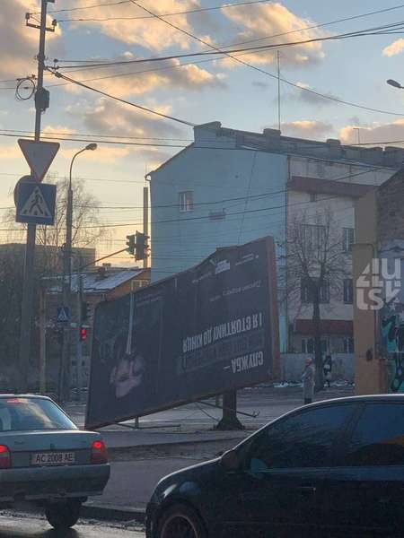 У Луцьку, на розі вулиць Шевченка та Ковельської, через сильний вітер впав білборд.