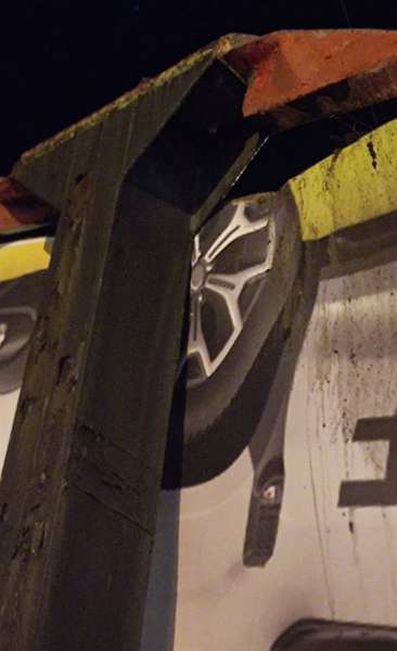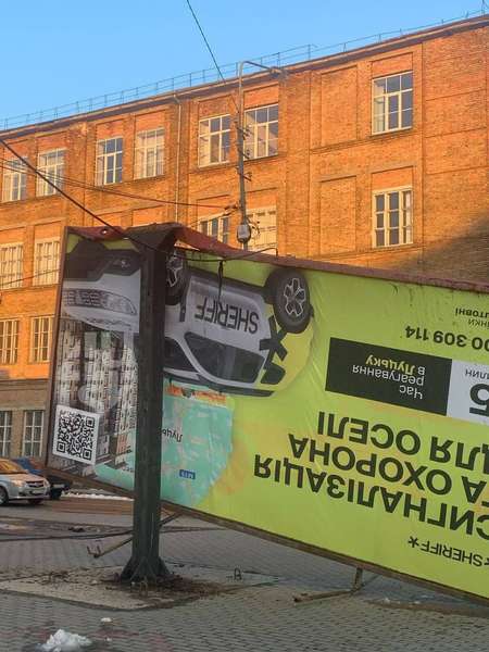 Ймовірно, конструкція білборда зазнала ушкоджень вчора, 12 березня, увечері. На фото видно, що каркас, на якому тримався рекламний щит, не витримав навантаження та зазнав механічних ушкодження. Станом на ранок, 13 березня, конструкція – досі пошкоджена.