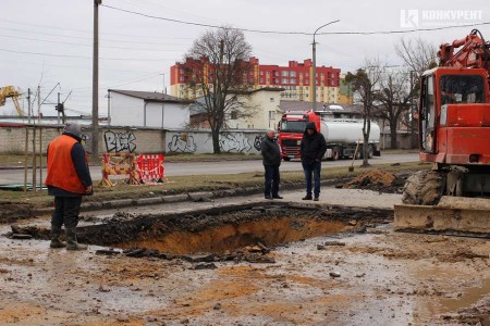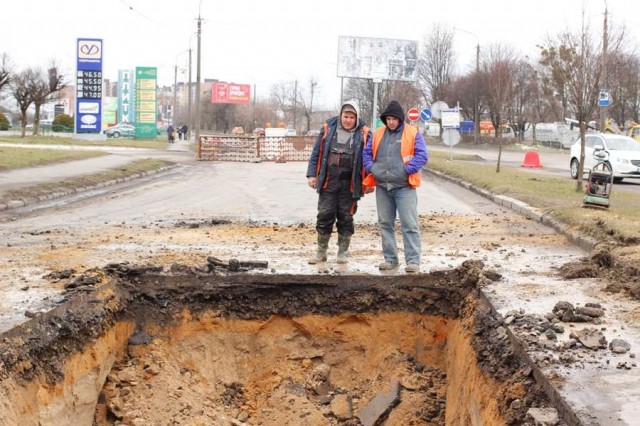 У Луцьку ліквідують величезне провалля, яке утворилося внаслідок підмивання ґрунту на вулиці Карпенка-Карого.