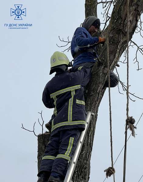У Луцькому районі чоловіка, який обрізав гілки на дереві, затисло на висоті – довелося викликати рятувальників.