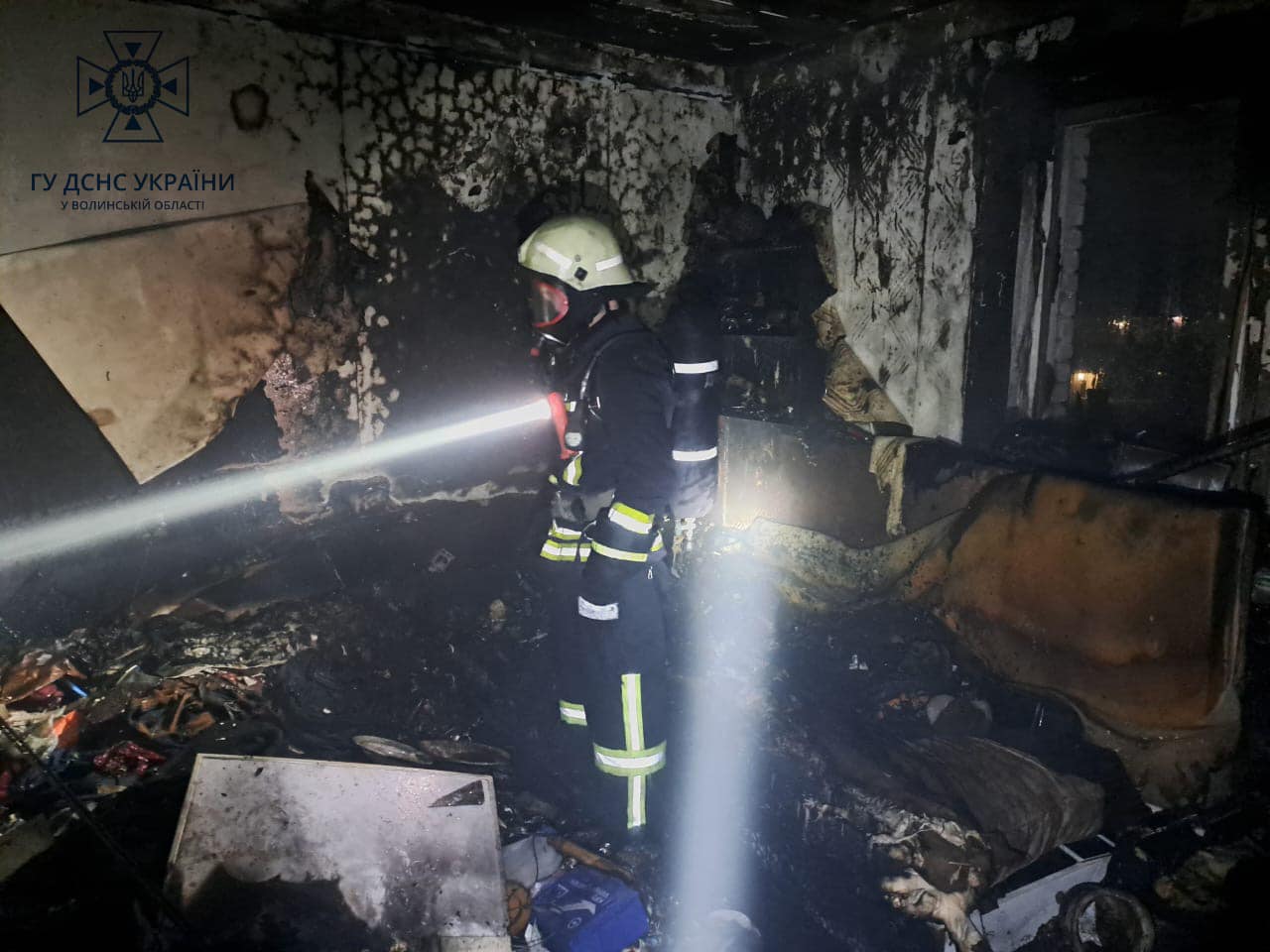 О 20:08 до Служби порятунку 101 надійшло повідомлення про пожежу у квартирі на верхньому поверсі п’ятиповерхового житлового будинку в м. Нововолинську. Рятувальники міської 5 ДПРЧ о 20:39 ліквідували пожежу. Вогнем знищено речі домашнього вжитку. Ймовірна причина пожежі: необережність під час куріння встановленою особою.