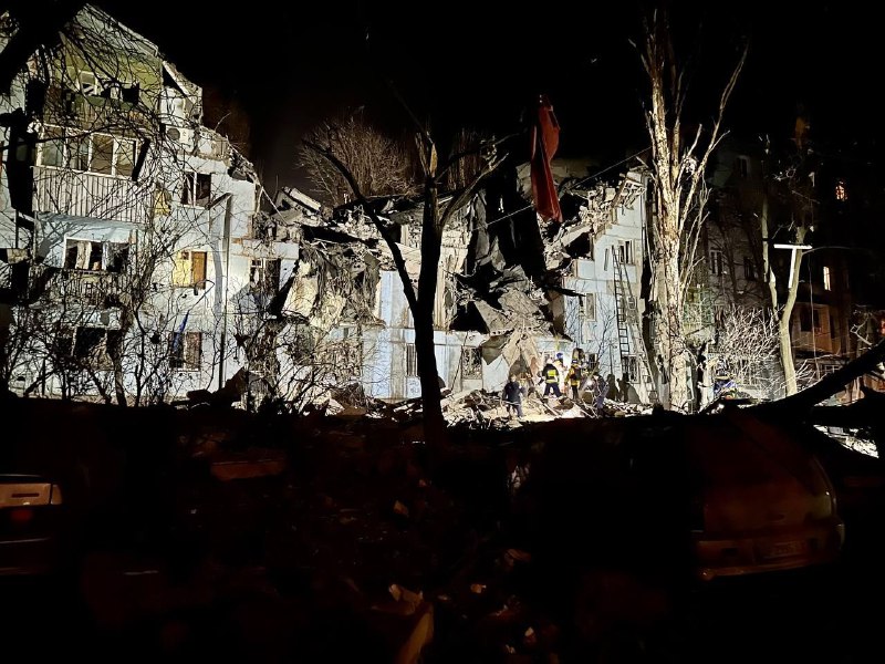 Рашисти у ніч на 2 березня обістріляли 5-поверховий будинок у Запоріжжі. Внаслідок удару будинок повінстю зруйнований, є загиблі та поранені.