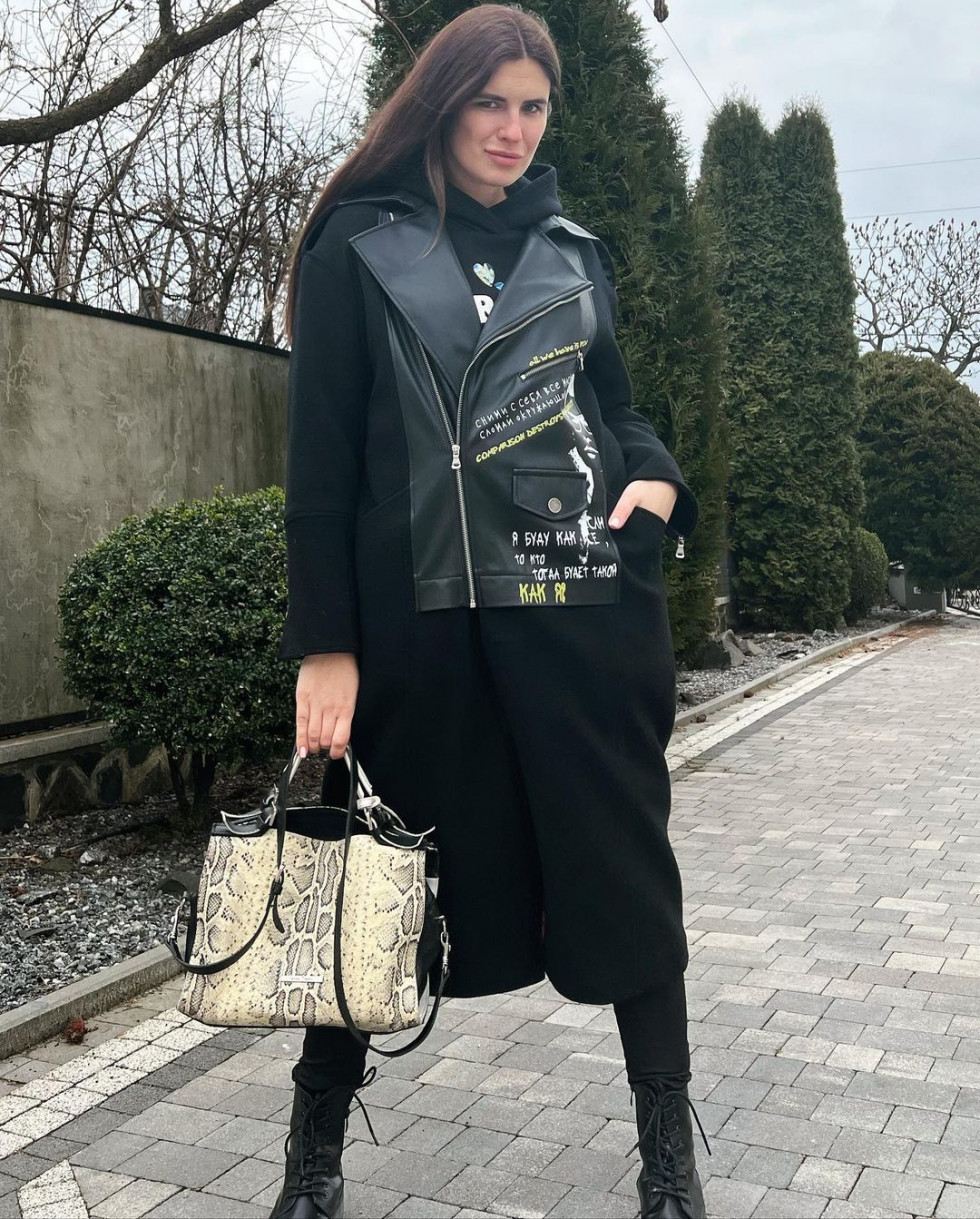 Блогерка Ірина Дяченко рекламує пальто від бренду GUITAR, на якому – цитати російської поетки Альони Антаріус.