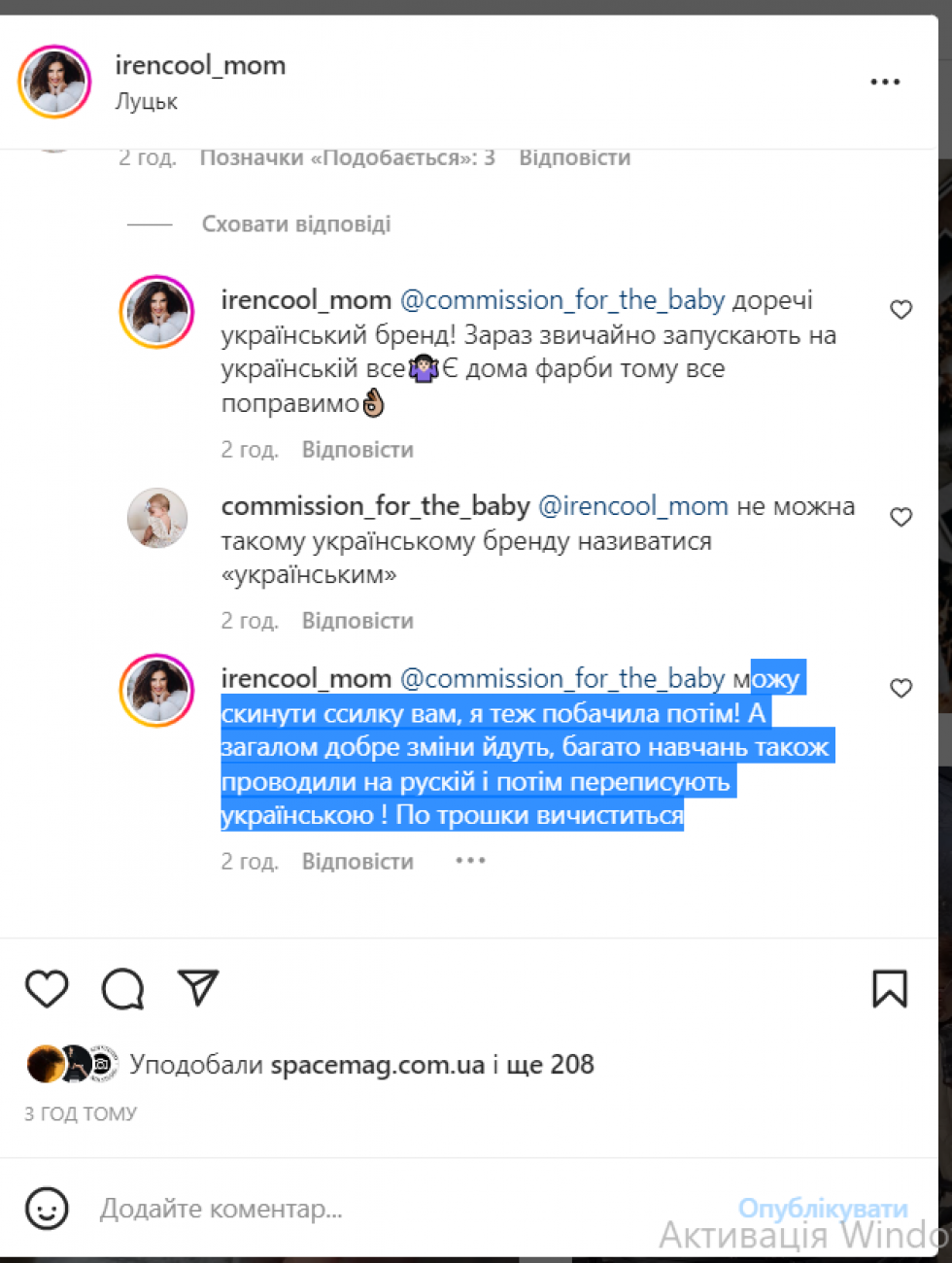 «Можу скинути ссилку вам, я теж побачила потім! А загалом добре зміни йдуть, багато навчань також проводили на рускій і потім переписують українською ! По трошки вичиститься»