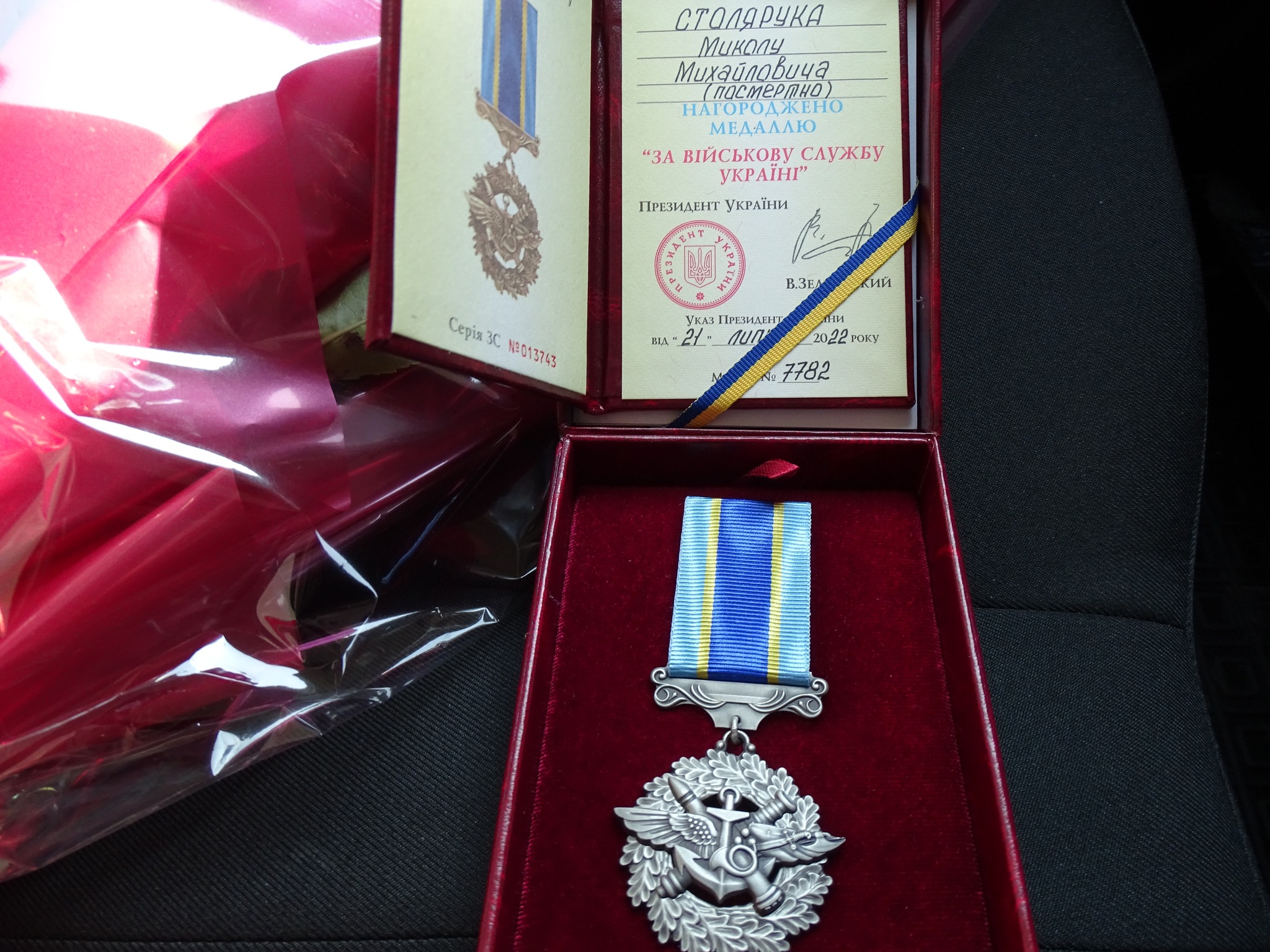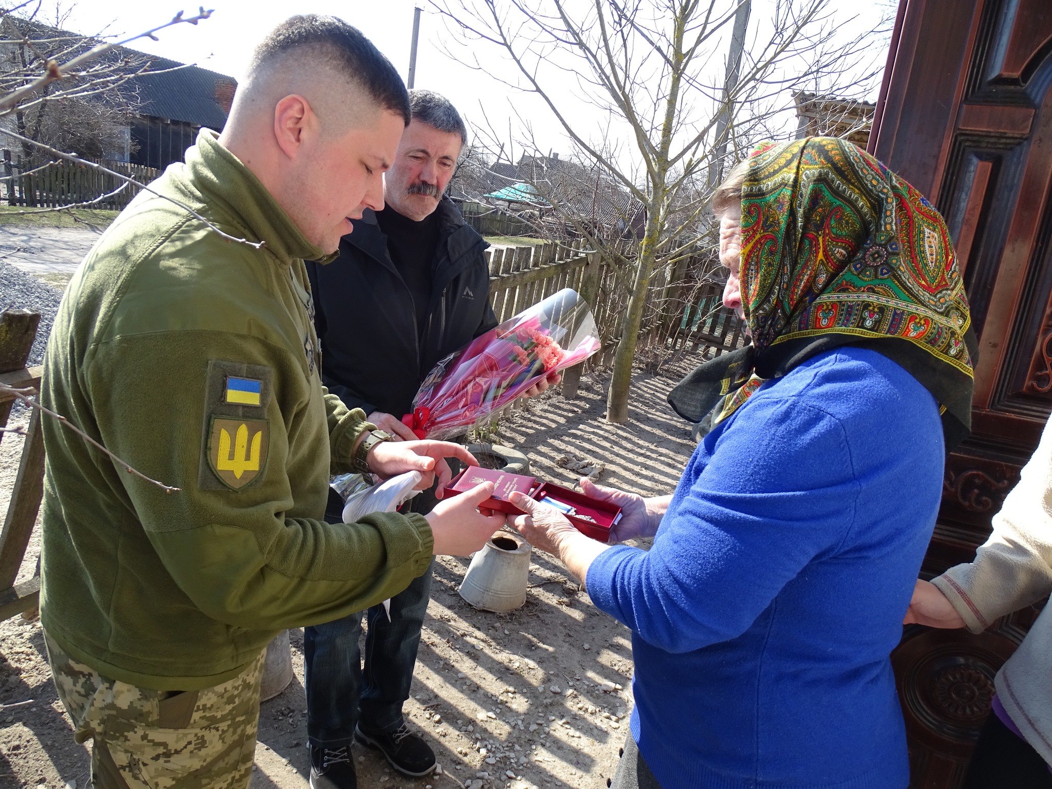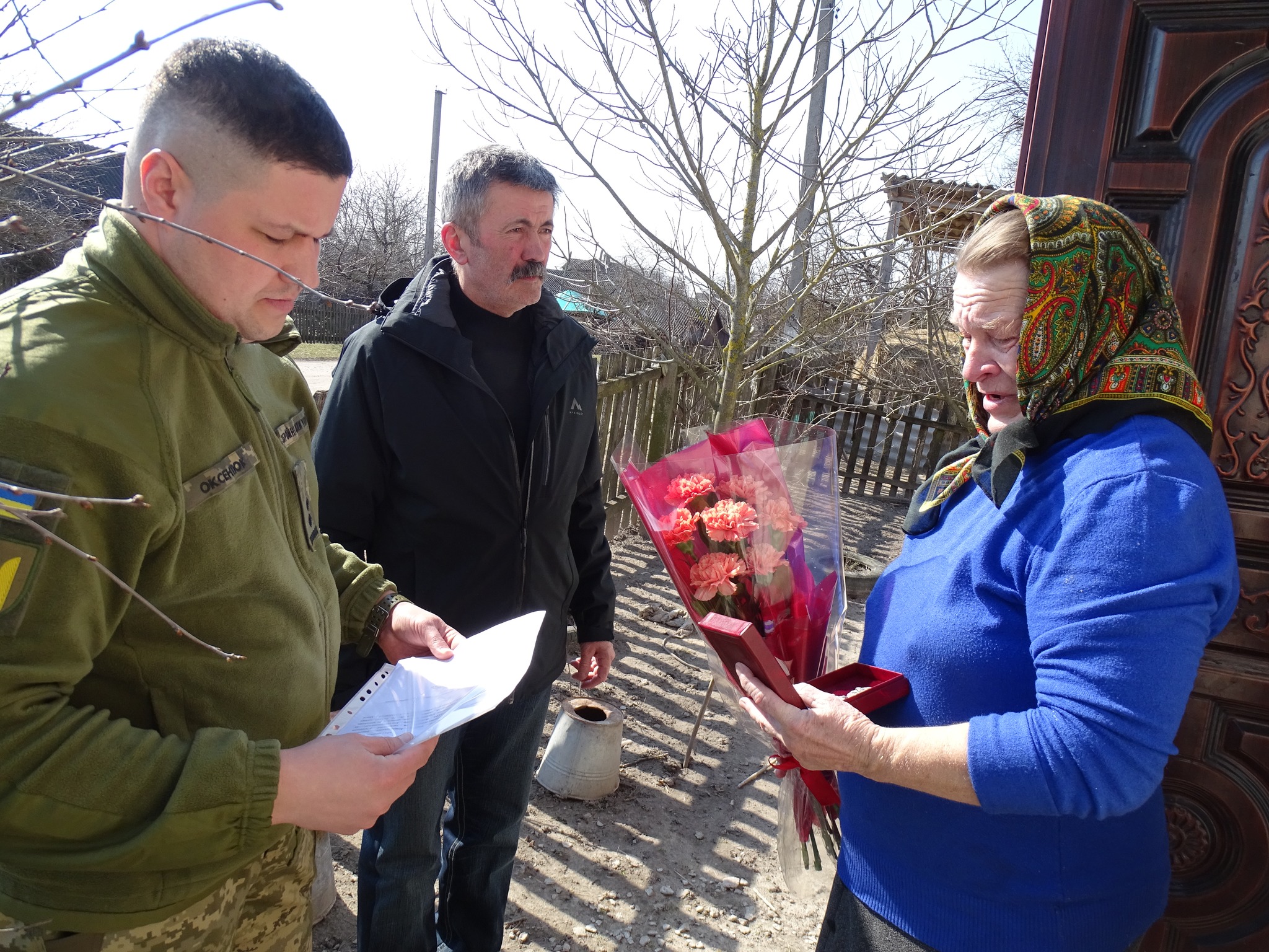 Державну нагороду мамі загиблого Героя Ользі Олександрівні вручили начальник Турійського відділення третього відділу Ковельського РТЦК та СП підполковник Владислав Оксентюк і Турійський селищний голова Олексій Безсмертний.