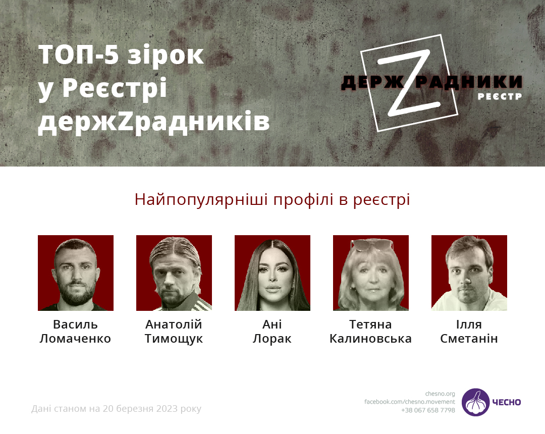 За рік функціонування Реєстр ДержZрадників відвідало понад 1,6 млн осіб. Однією з найпопулярніших категорій виявились зірки — спортсмени, артисти, співаки та діячі культури. Як і медійники, які також є в реєстрі, завдяки своїй впізнаваності вони можуть спробувати себе на виборах або підтримувати інших кандидатів.