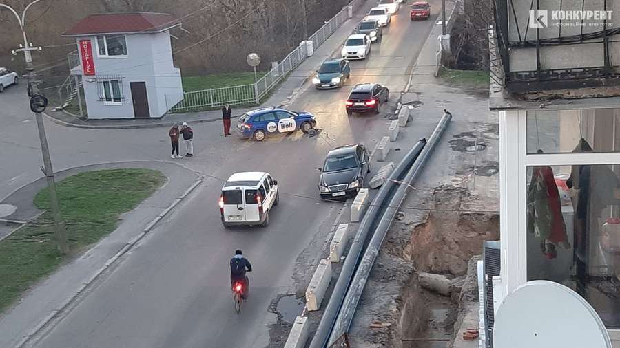 Зі слів очевидців, водій синього автомобіля з логотипом служби таксі «Болт» виїздив з парковки і не пропустив чорний «мерс», який в той час рухався вулицею.