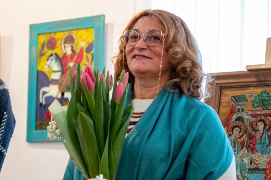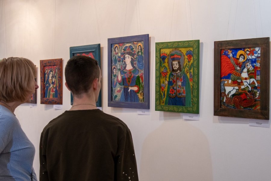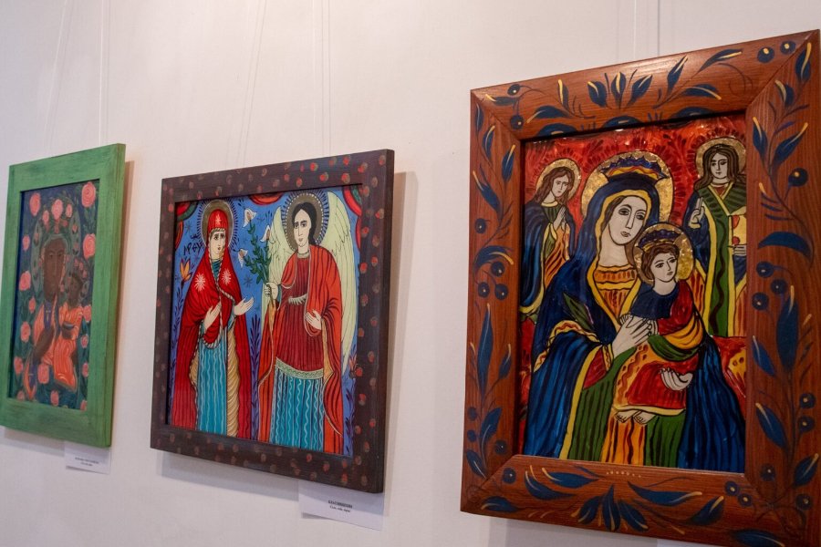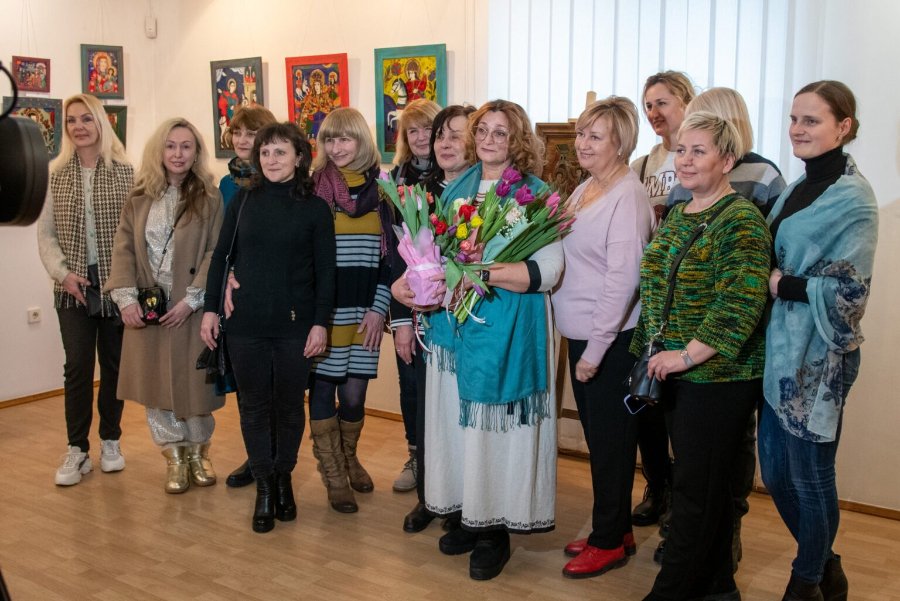 Свої ікони, виписані на склі, професійна художниця і викладачка Арт-студії «П’ятірня» виставляє вперше, хоч працює у цій техніці понад 20 років. Її сакральний доробок здебільшого живе у людських домівках. І настільки гармонійно вписався в атмосферу обійсть, що далеко не всі власники погодилися надати образи для виставки.