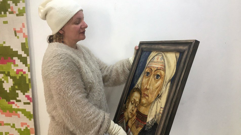Художниця малює картини на левкасі. Каже: нині мало митців використовують цю техніку.