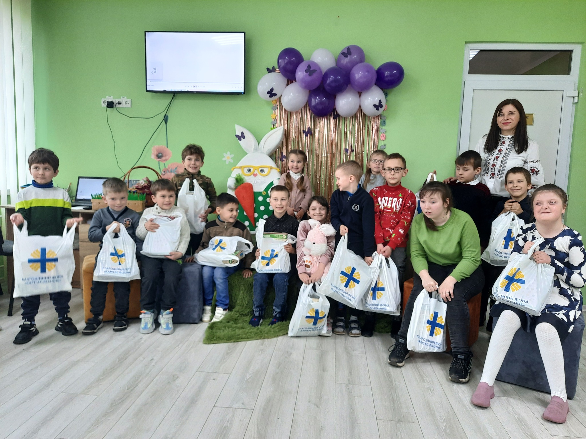 «Світле Воскресіння прийнято наповнювати добрими справами, збагачуватися духовно, допомагати ближньому, дарувати надію і підтримувати віру в серцях на щасливе і радісне майбутнє. Саме з такою метою на захід завітав представник Благодійного фонду "КАРІТАС-ВОЛИНЬ" Ігор Шкільний та презентував вихованцям центру великодні подарунки. Щиро дякуємо Благодійному фонду, нехай Ваше добро повертається сторицею», - йдеться у дописі.