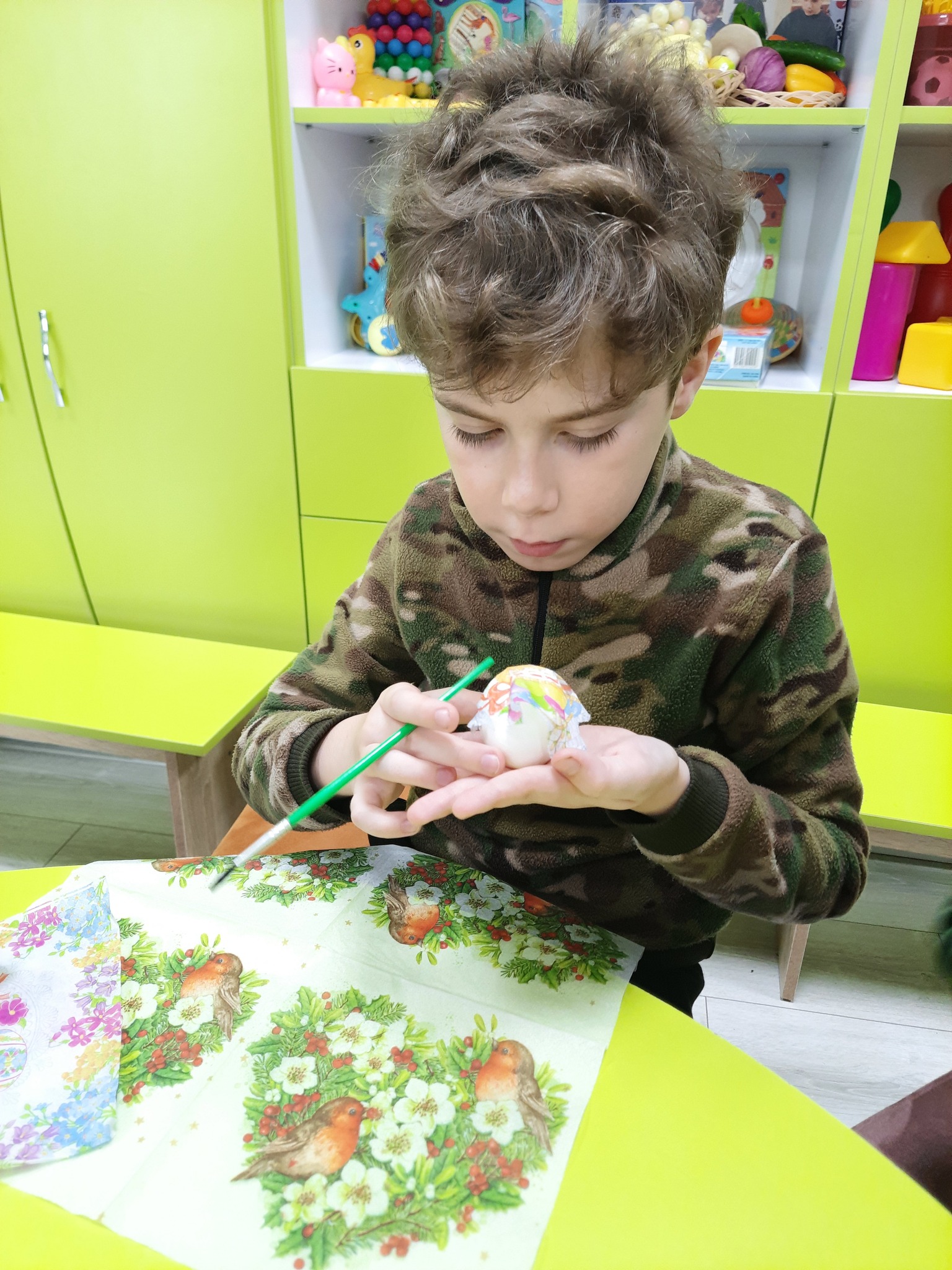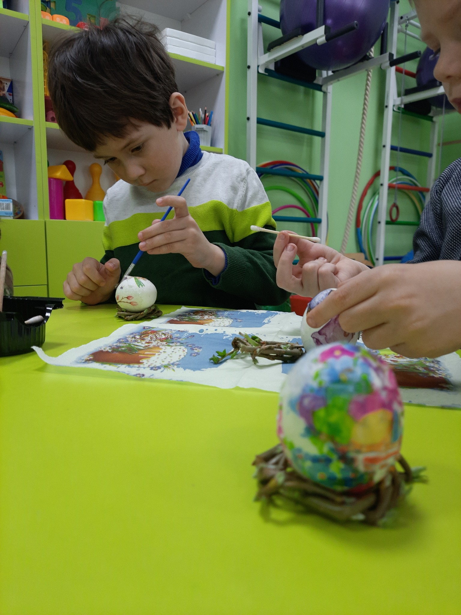 Вихованці КУ "Інклюзивно-ресурсний центр" Рожищенської міської ради отримали справжній майстер-клас з оздоблення великодніх яєць в техніці декупаж.