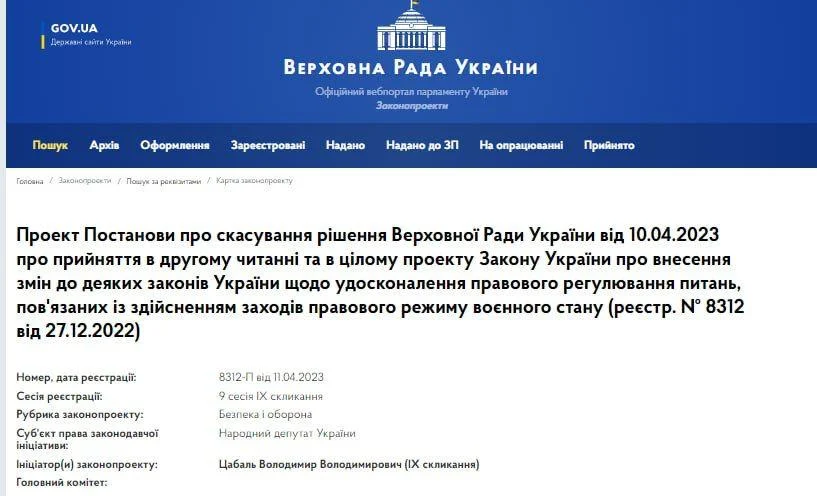 Постанову вніс народний депутат від партії "Голос" Володимир Цабаль.