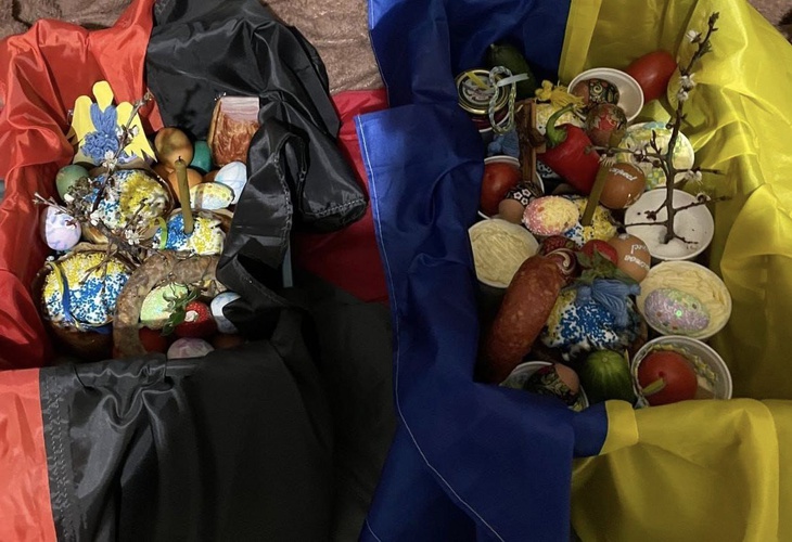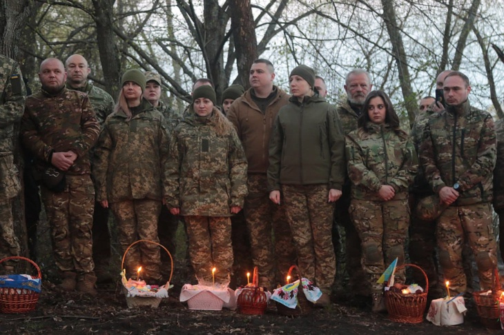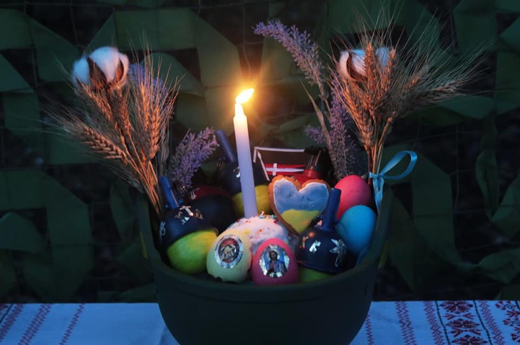 «Укотре поспіль воїни 14 окремої механізованої бригади імені князя Романа Великого відзначають Великдень на фронті. Попри бої і випробування ми доклали неймовірних зусиль, аби фронтовий Великдень був урочистим. Капелан нашої бригади, отець, як і годиться, вдосвіта, після урочистого богослужіння, освятив пасхальні страви», – повідомили у 14 ОМБ.
