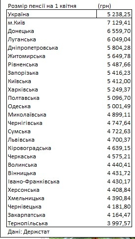 А ось найбідніші пенсіонери мешкають у Тернопільській (3998 гривень), Закарпатській (4164 гривень) та Чернівецькій (4182 гривень) областях.