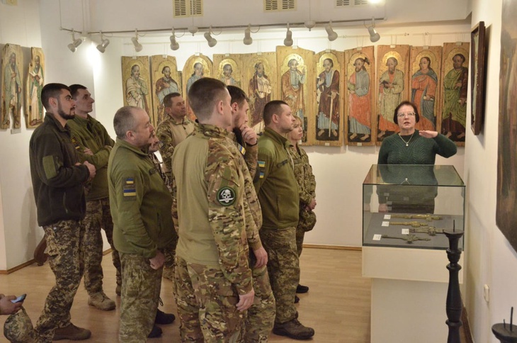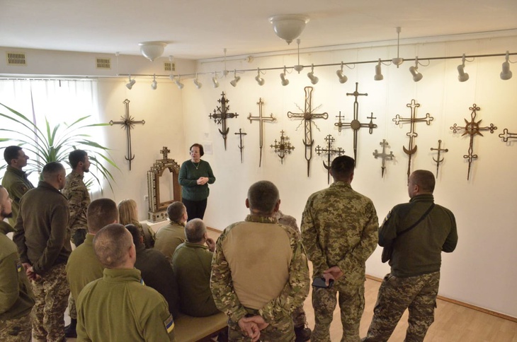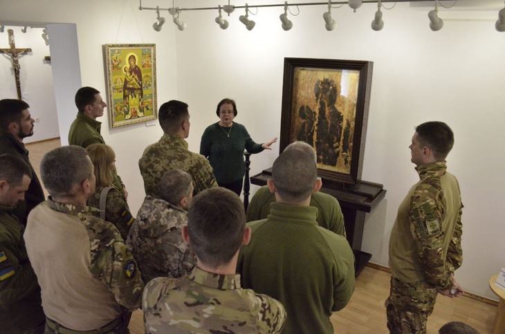 У подарунок воїни отримали обереги - листівки із зображенням Холмської Чудотворної ікони Богородиці. Про історію краю військовослужбовці більше дізналися з розповідей працівниці Волинського краєзнавчого музею.