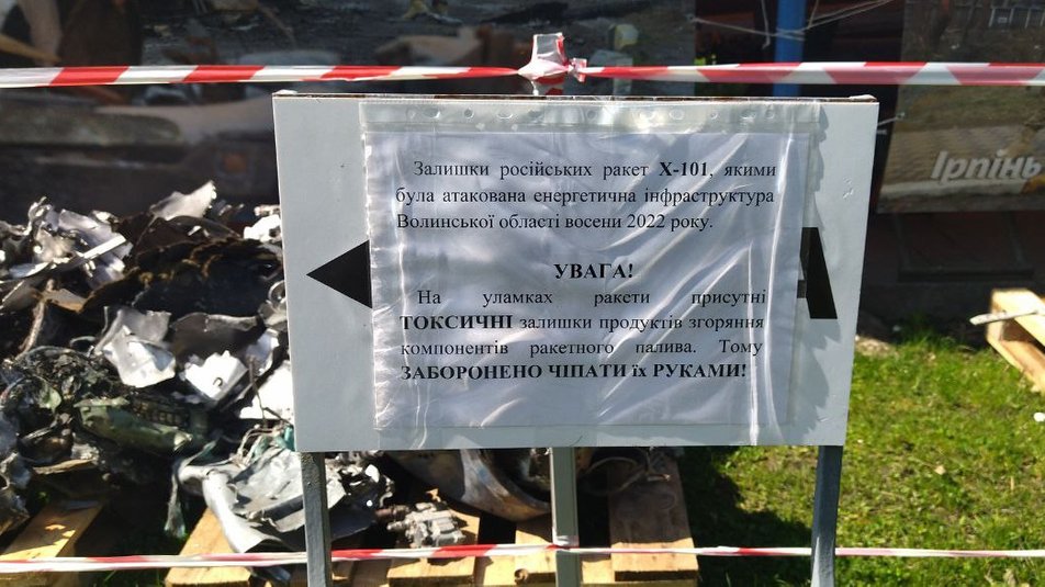 У Волинському музеї українського війська та військової техніки діє експозиція уламків ворожих ракет, якими восени 2022 року обстріляли Луцьк.