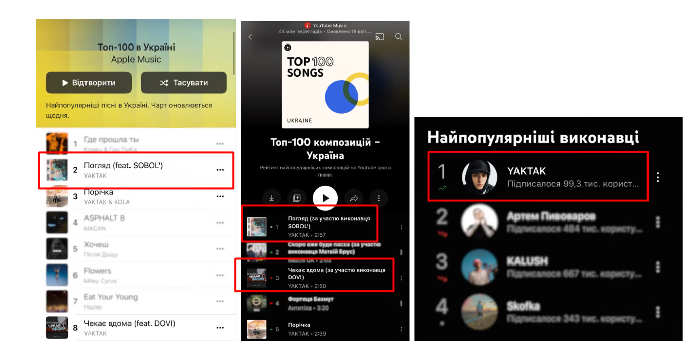 Також Yaktak займає перше місце найпопулярніших виконавців YouTube Music.