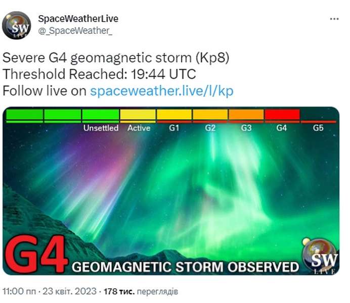 Про це повідомляє Укрінформ з посиланням на повідомлення компанії Space Weather Live.