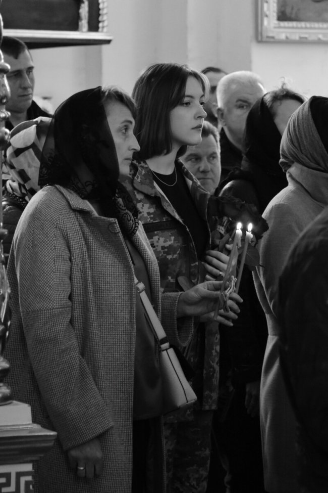 “Коли наші захисники лежать ось тут, посеред храму, я завжди згадую Христові слова: “Ви куплені дуже дорогою ціною”. Завдяки їхній жертві ми сьогодні маємо можливість відносно спокійно жити. Тому що у нас Пасха – а вони воюють, нам холодно в квартирі – а їм в окопі не холодно?! Тому будімо себе! Війна в нас, люди! І дякуймо щиро кожній сім’ї за їхніх Героїв, які знаходять у собі сили полишити мирне життя і піти захищати країну та нас із вами”, – сказав у скорботній промові Луцький міський декан, протоієрей Михайло Онищук.