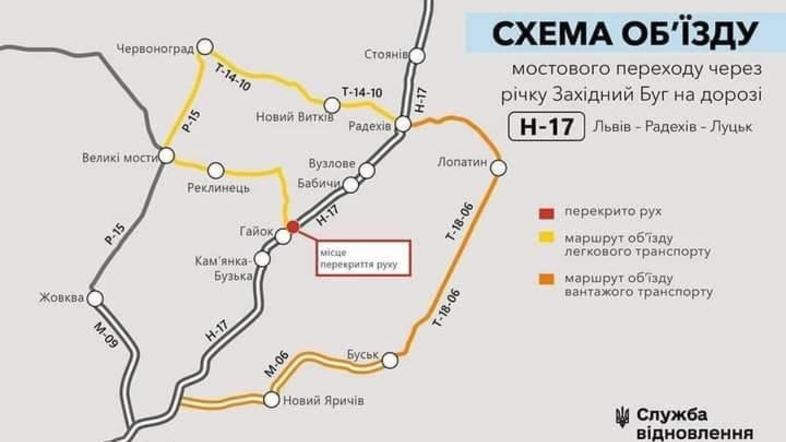 Схема об'їзду мостового переходу через річку Західний Буг на дорозі Н-17 Львів — Радехів — Луцьк: