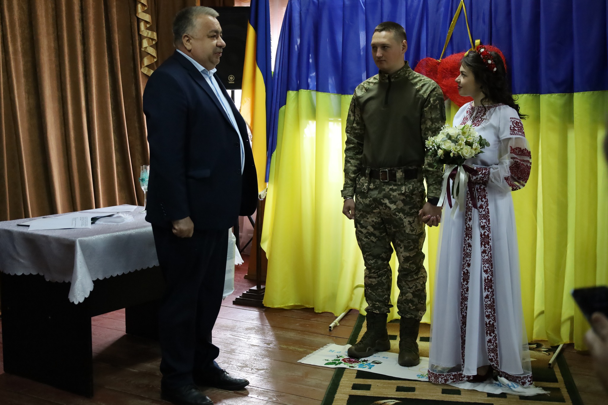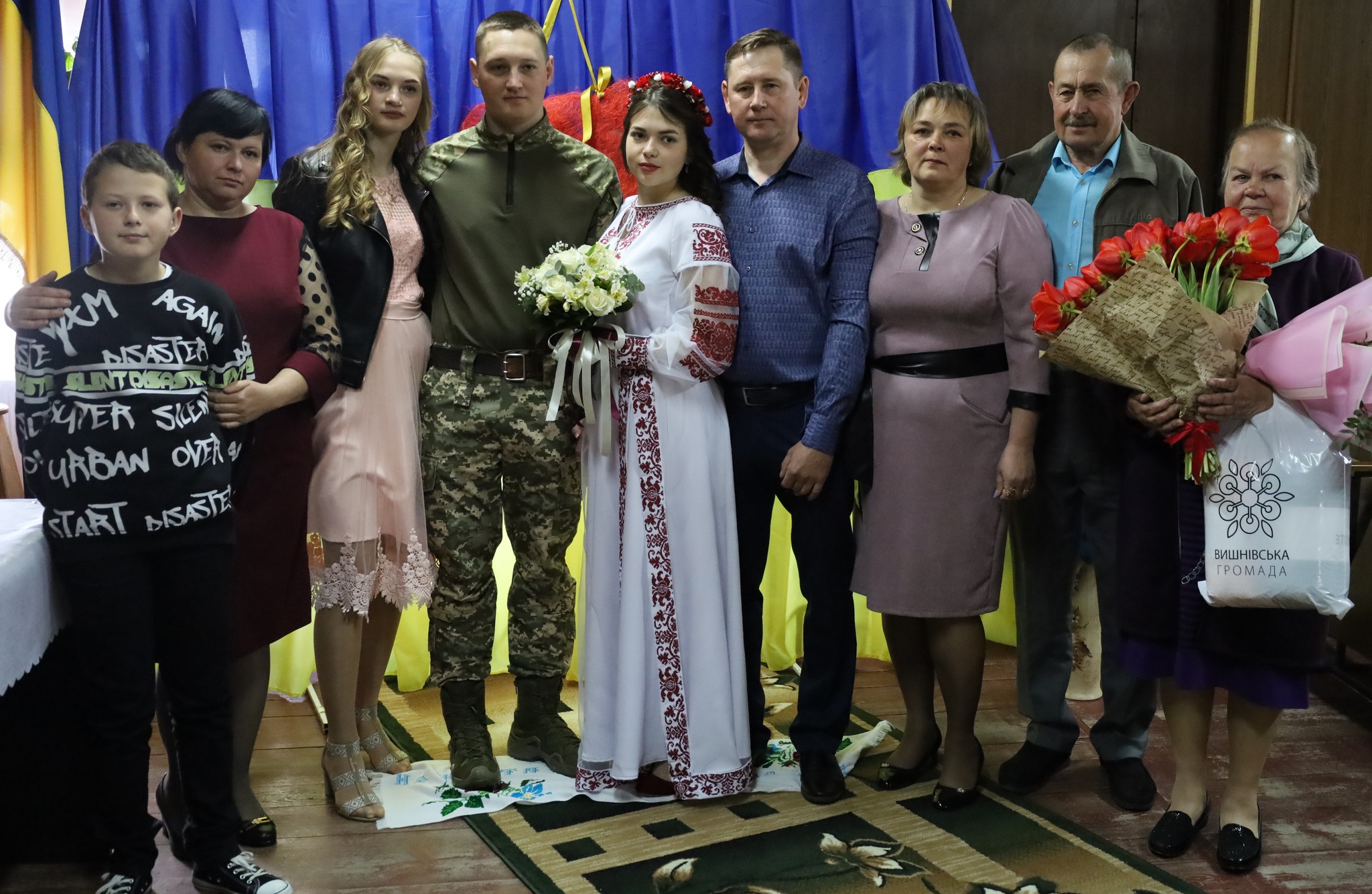 «Урочиста подія одруження військового Дмитра та красуні Орини замилувала та подарувала щемливі миті сьогодні працівникам Вишнівської громади. Щиро захоплюємося таким відважними та патріотичними людьми. Закохані у скорочені терміни поспішили зареєструвати шлюб, бо наречений знову повертається до проходження військової служби. Щиро вітаємо наших молодят зі створенням нової української сім’ї», - йдеться у дописі.