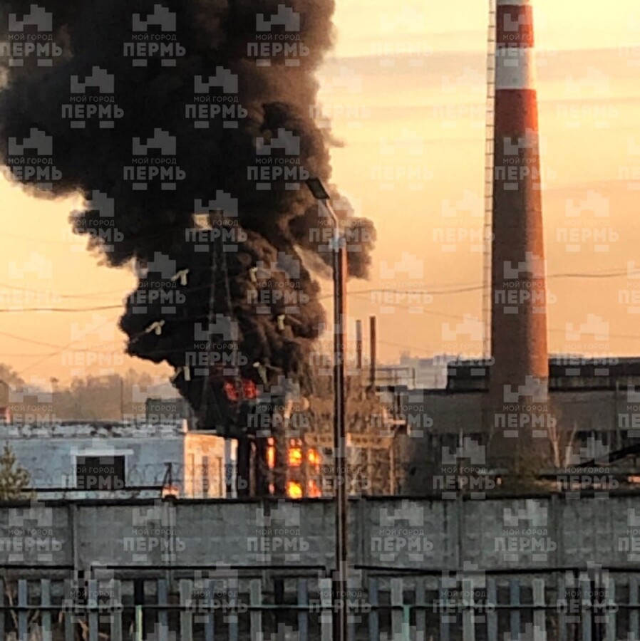У російському місті Перм виникла пожежа на території оборонного холдингу «Мотовіліхінські заводи», де виробляются снаряди для артилерії та реактивні системи залпового вогню.