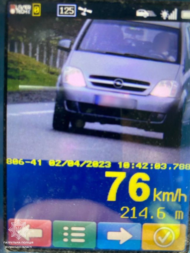 Сталося це вчора на автодорозі Н-22 Устилуг — Луцьк — Рівне. Поблизу села Затурці охоронці порядку контролювали швидкісний режим за допомогою приладу TruCAM. Близько 11-ї години вони зафіксували автомобіль Opel, який рухався зі швидкістю 76 км/год.