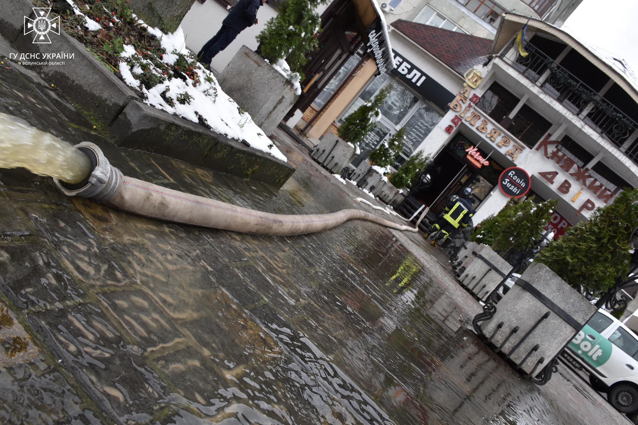 Луцькі рятувальники відкачали воду з підтопленого підвалу ресторану на проспекті Соборності.