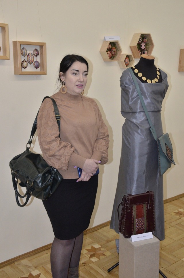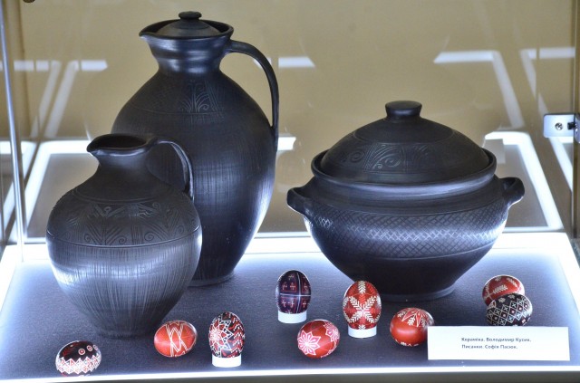 Вражають формою керамічні вироби, делікатні писанки, роботи, плетені з природних матеріалів, художнє різьблення, вишиті й ткані рушники та вироби зі шкіри, декоровані бісероплетінням, восковий віночок.