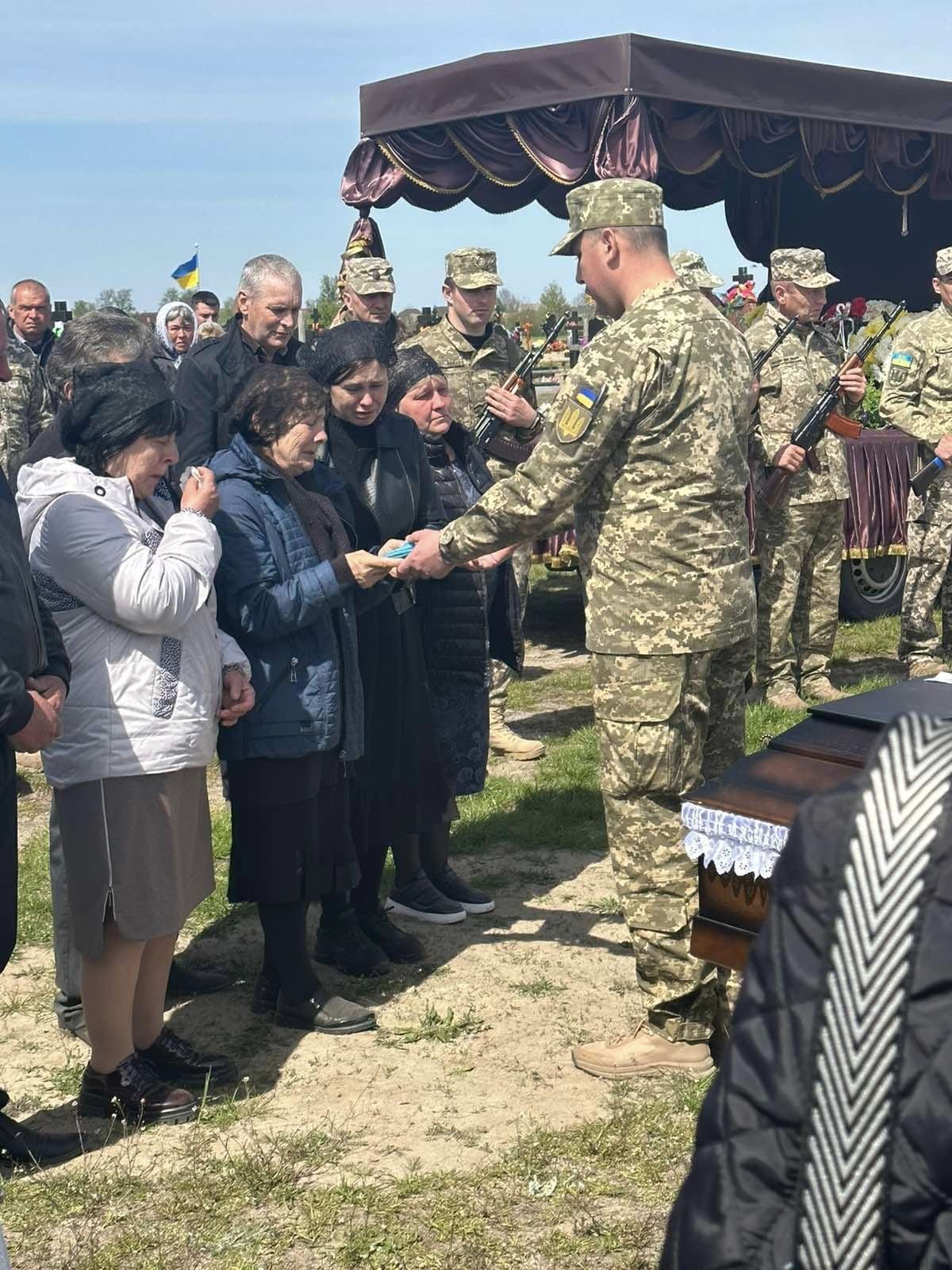 «Невимовна втрата для дружини, найдорожча - для дітей, найболючіша - для батьків. Країна втратила мужнього і відданого Захисника. Тепер у небесному воїнстві він захищатиме нас із небес. Перепоховання і прощання із Героєм відбулося 29 квітня у смт Ратне, на яке зібрались сотні жителів: рідні, друзі, однокласники, знайомі та небайдужі. На кладовищі воїнові віддали останню земну честь. Вічна шана тобі, наш Герою», - написали у громаді.