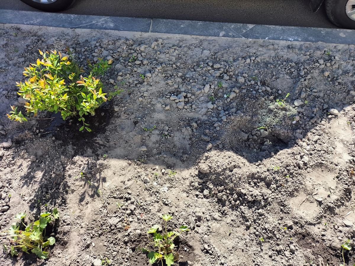 Після вихідних виявили черговий акт вандалізму: дві чималенькі ями на місці чотирирічних кущів спіреї на вулиці Незалежності.