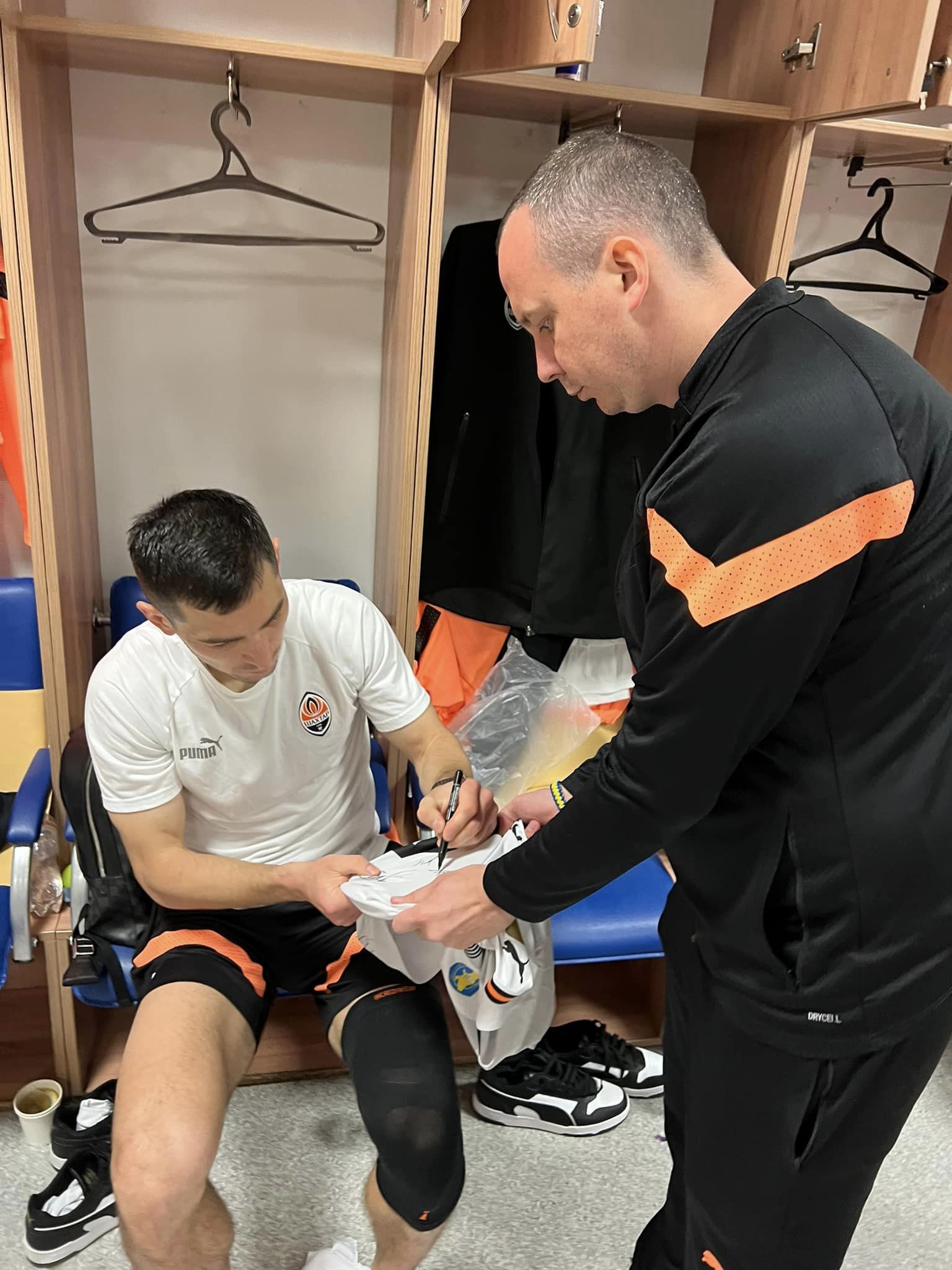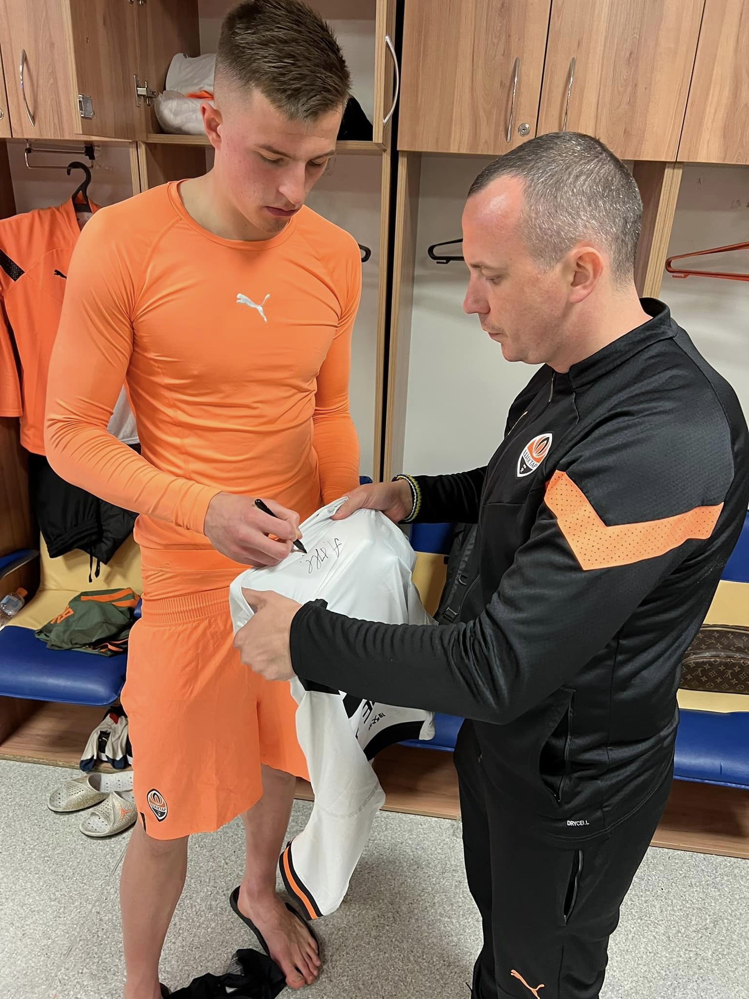 Головний тренер колективу Ігор Йовічевіч презентував йому клубну футболку з підписами футболістів. Як годиться, спогад про подію закріпили пам’ятним фото.