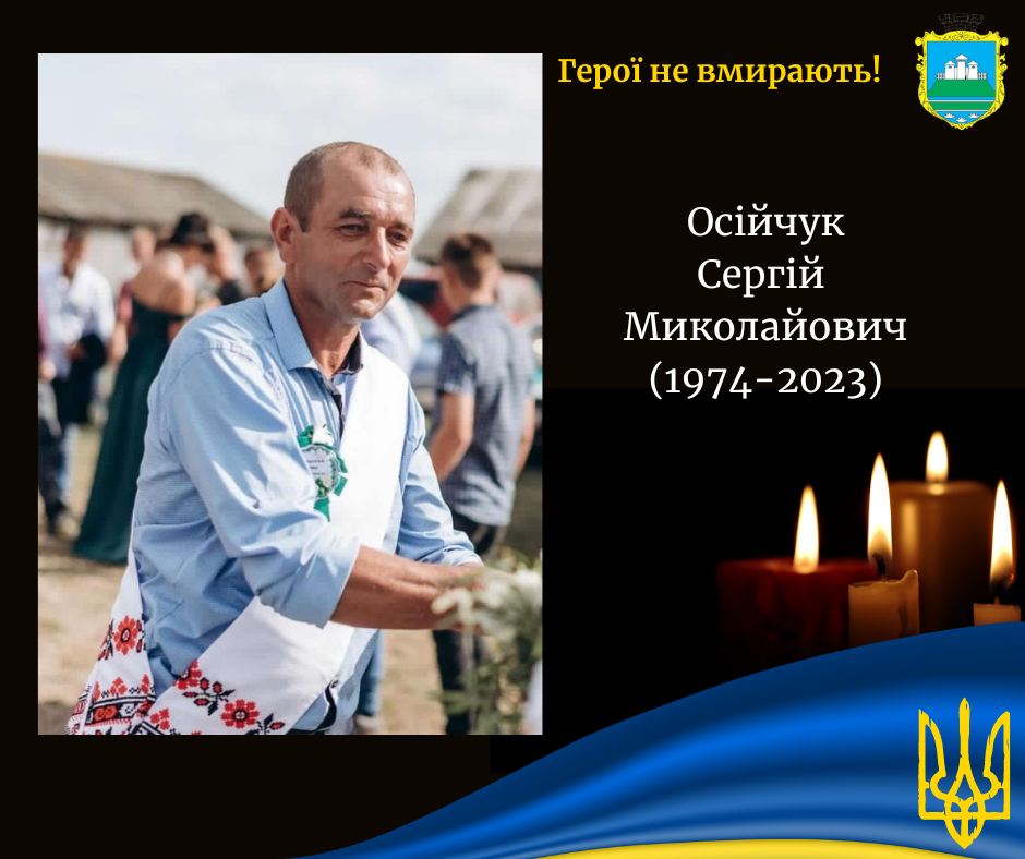 Повідомили про смерть ще одного вірного сина України, захисника із села Щитинь – Осійчука Сергія Миколайовича, 1974 року народження.